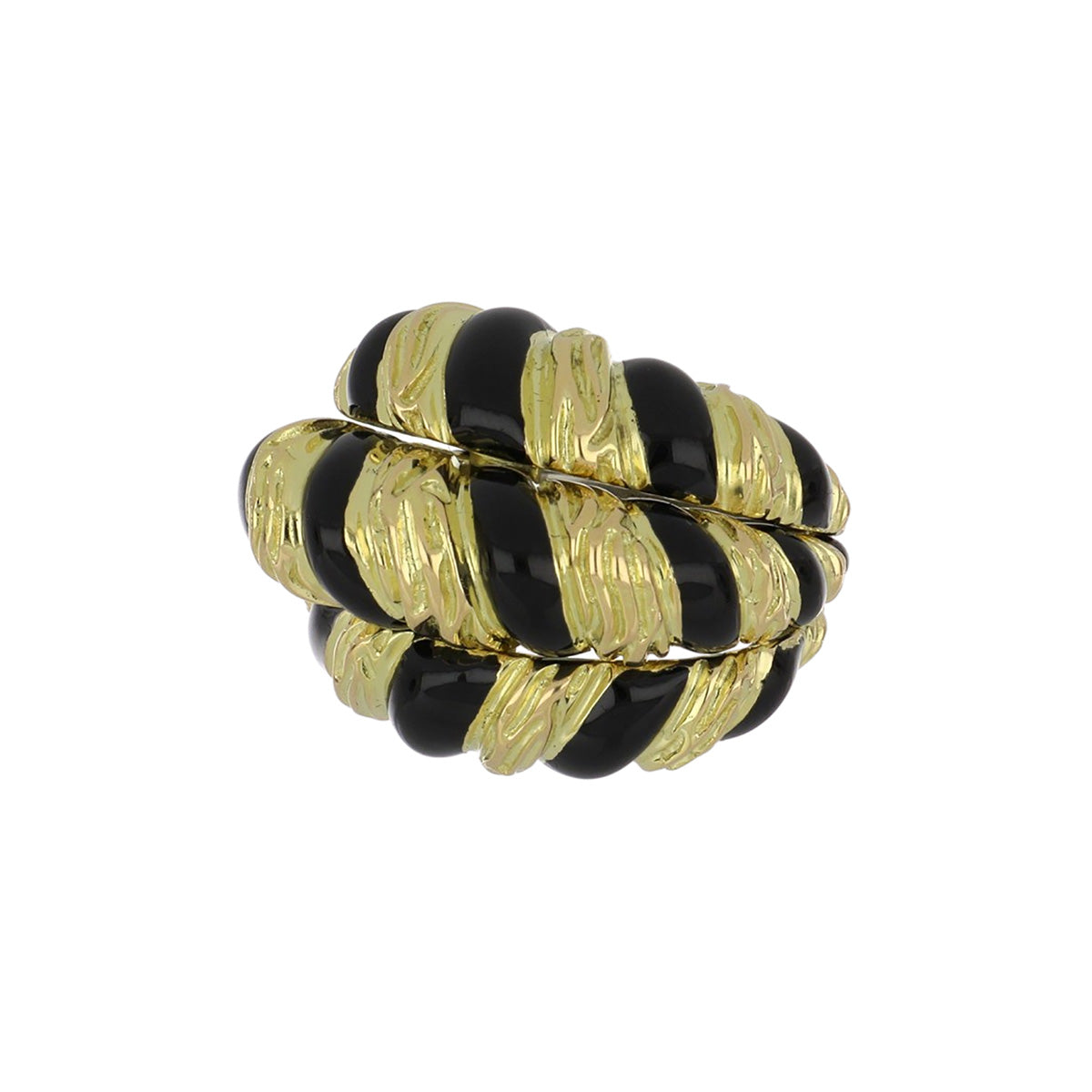 A vintage David Webb three row coil design ring with black enamel from the "Manhattan Minimalism" collection, in 18K yellow gold. Circa 1980.