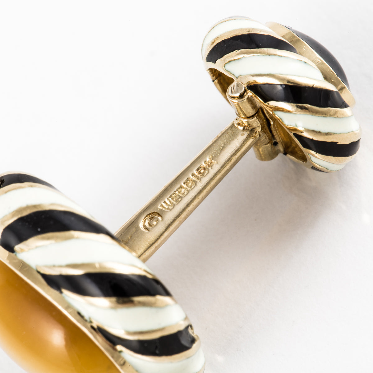 Vintage David Webb 18K Gold Enamel & Tiger's Eye Swirl Cufflinks