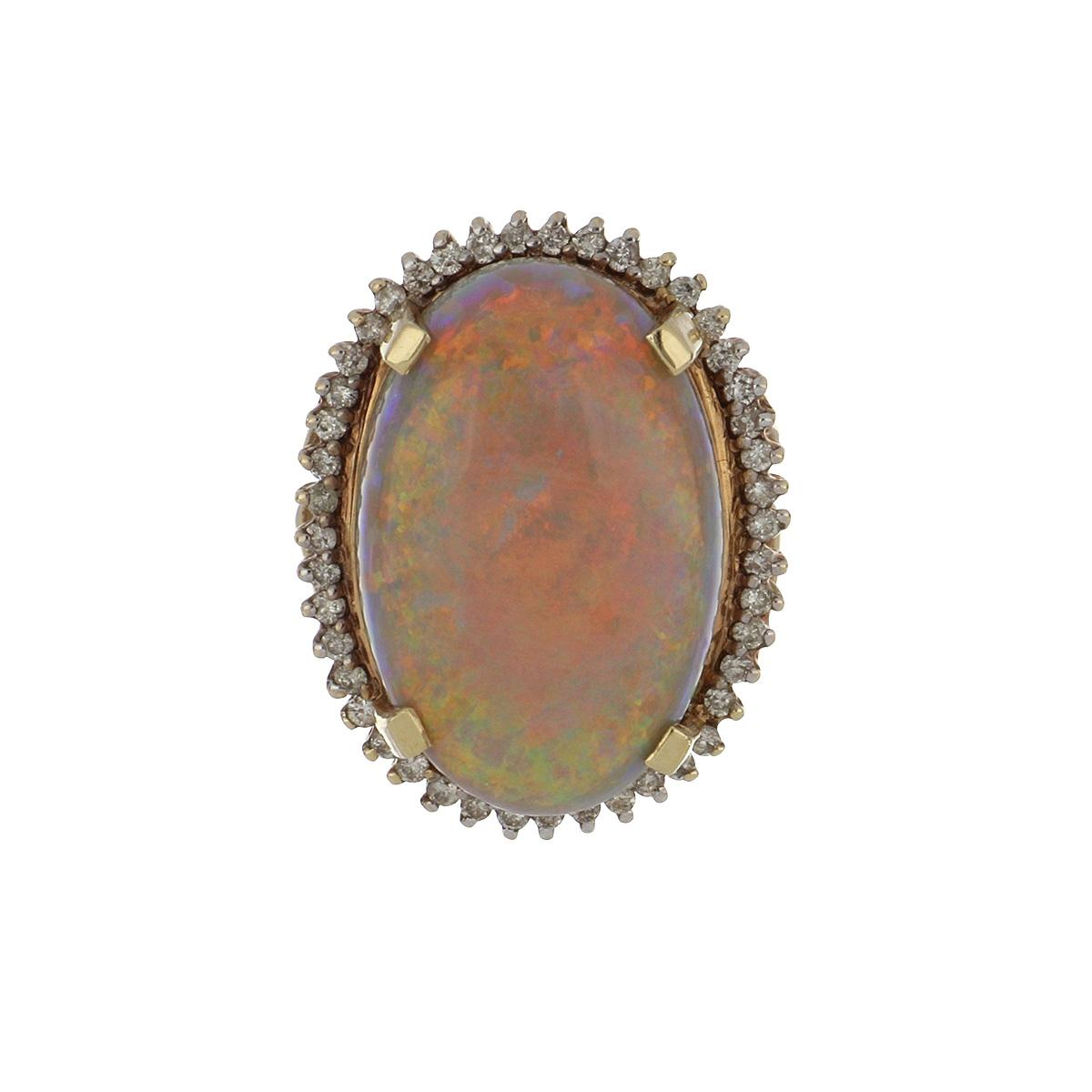 Vintage/Estate 14K Gold Opal Cluster/Halo Ring with Diamonds