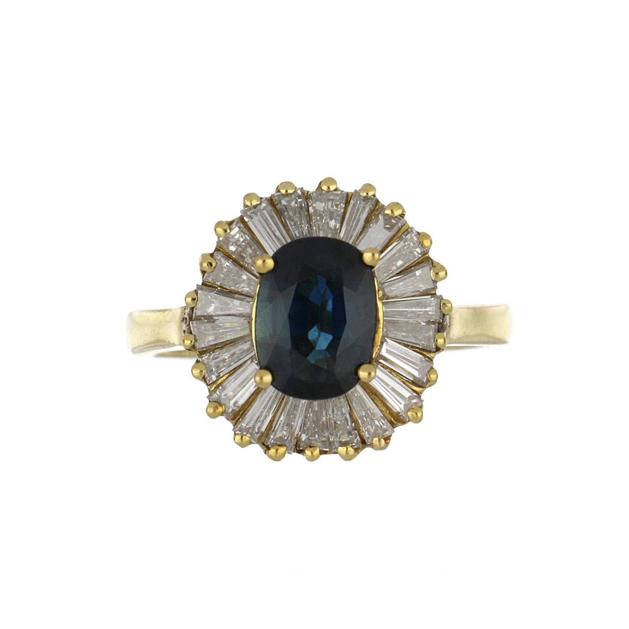 An estate vintage, sapphire and diamond ballerina ring set in 18k yellow gold. Circa 1980.