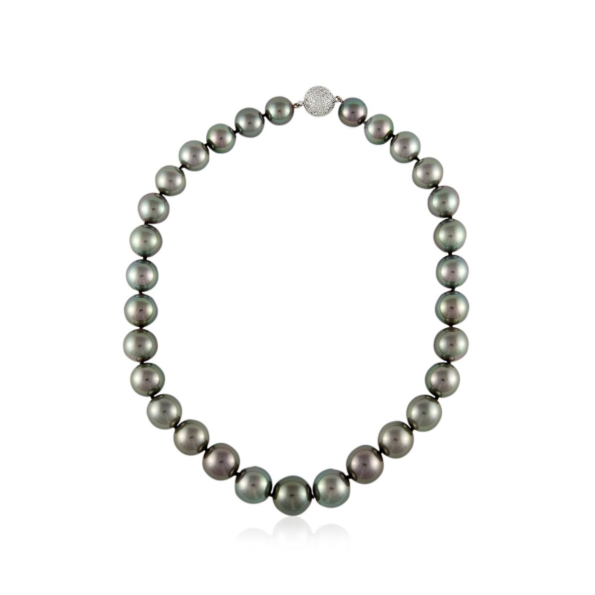 A Tahitian pearl necklace with a diamond clasp set in 18K white old. Circa 2000.