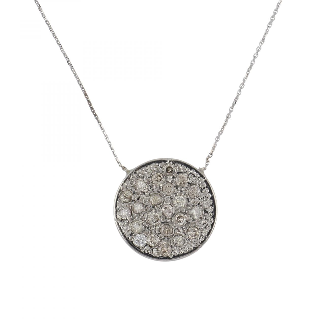 An estate 14K white gold diamond disc pendant necklace. Circa2000