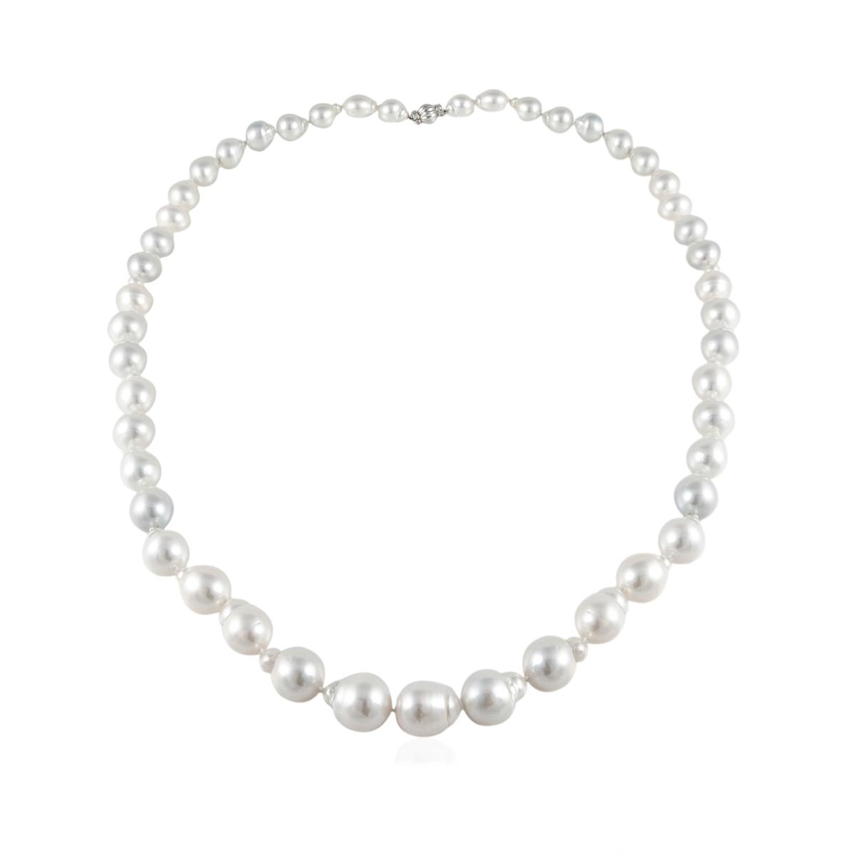 An estate baroque south sea cultured pearl necklace with a diamond clasp set in 14K white gold.