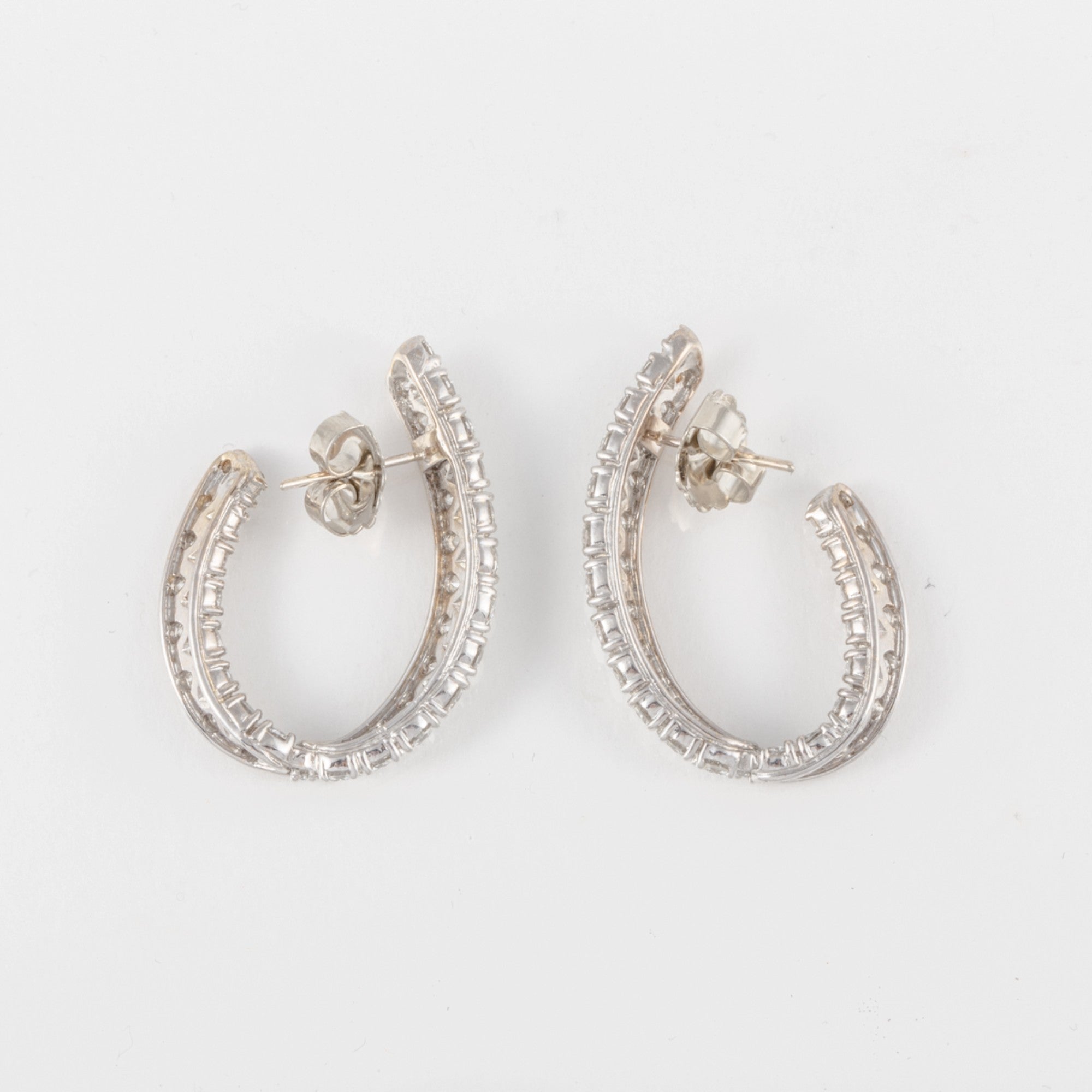 A pair of estate classic vintage round diamond loop earrings in 18K yellow and white gold.