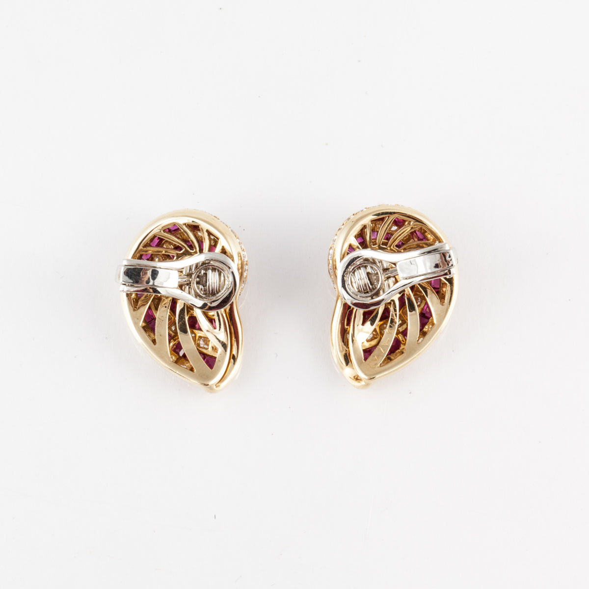 Vintage Tiffany & Co. 18K Gold Ruby and Diamond Nautilus Earrings