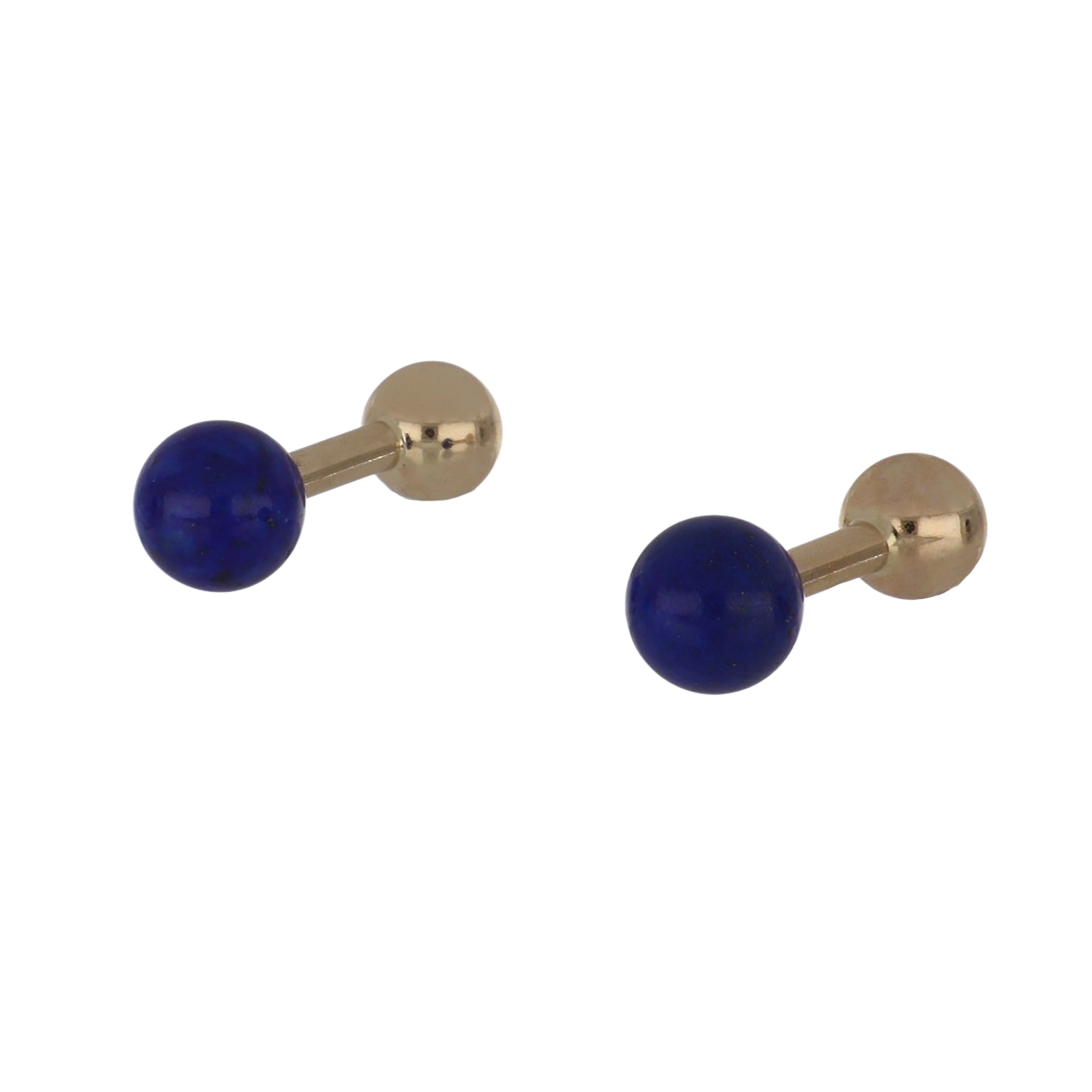 A pair of vintage Tiffany & Co. lapis bead cufflinks, set in 14K yellow gold. Circa 1970.Vintage & Estate Collection2 lapis beads: 11.00mm