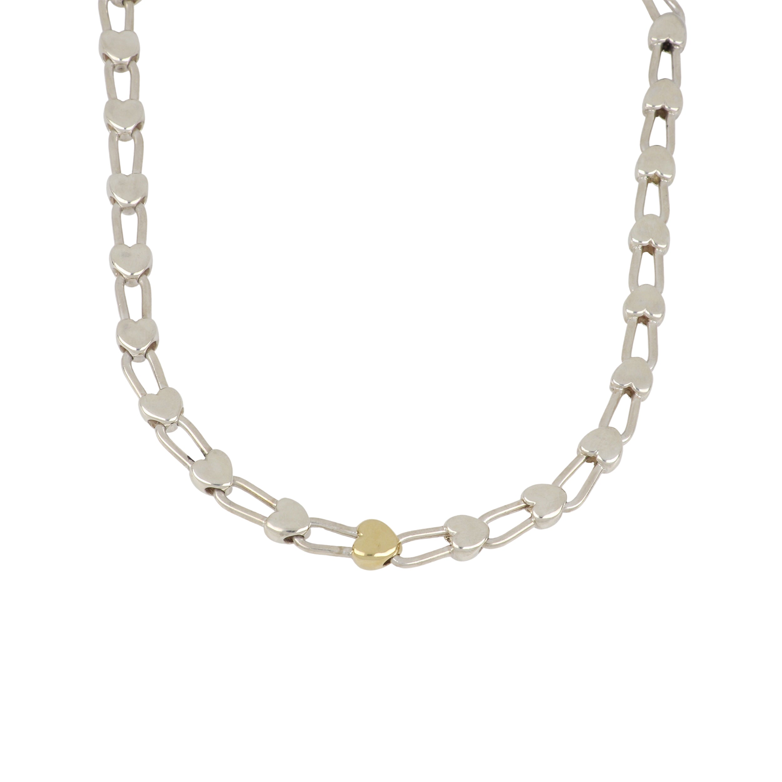 A vintage Tiffany & Co. "Padlock Heart Necklace", in sterling silver and 18K yellow gold. Circa 1990.