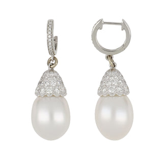 Estate Peter Atman Platinum South Sea Pearl Earrings with Marquise Diamonds