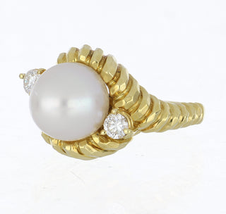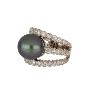 Vintage/Estate White Platinum South Sea Pearl Cocktail Ring with Diamonds