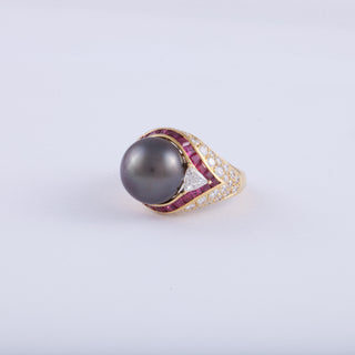 Vintage David Webb Two-Tone Black Enamel, South Sea Pearl & Diamond Cocktail Ring