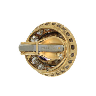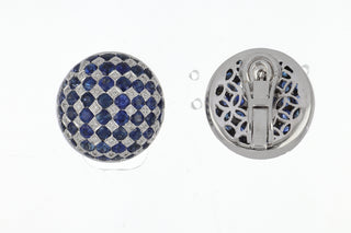 Vintage 1990s 18K White Gold Sapphire and Diamond Checkerboard Button Earrings