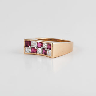Vintage/Estate 14K Gold Rubellite Tourmaline Solitaire Ring with Side Stones with Diamonds