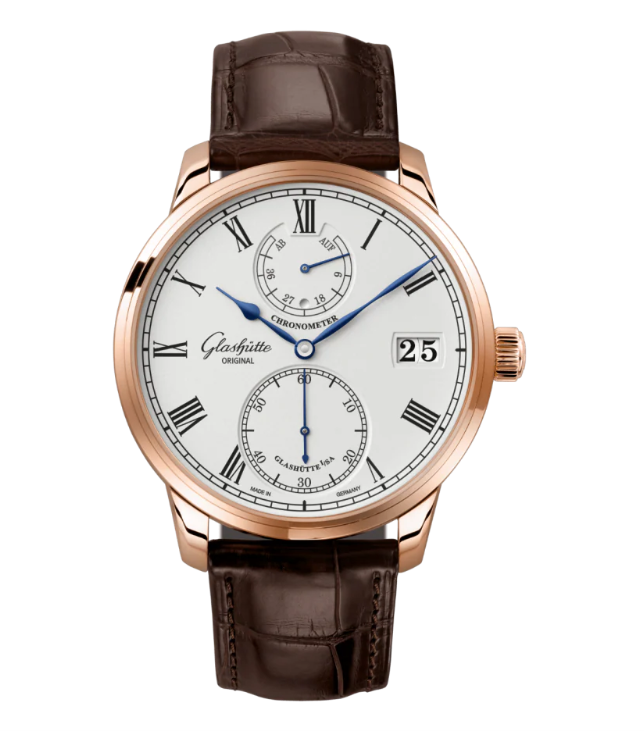 A new Glashutte Original, Senator Chronometer watch in 18k red gold and Louisiana Alligator.