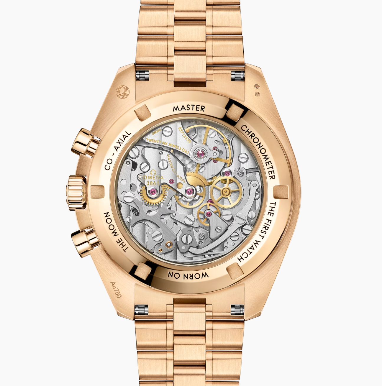 The Moonwatch is powered by OMEGA's Co-Axial Master Chronometer Calibre 3861 with special luxury finish.