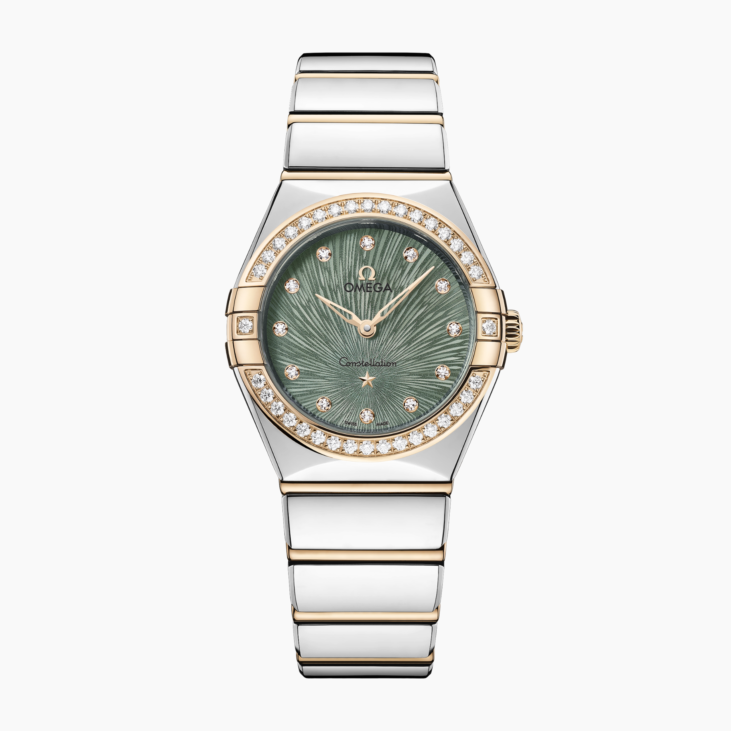This 28 mm model is crafted in stainless steel and 18K Moonshine™ Gold, and features a radiant diamond-paved bezel. The PVD green dial has been given a distinctive Supernova pattern through electrochemical etching, while other details include 18K Moonshine™ Gold hands and star, and diamond hour markers in 18K Moonshine™ Gold holders.