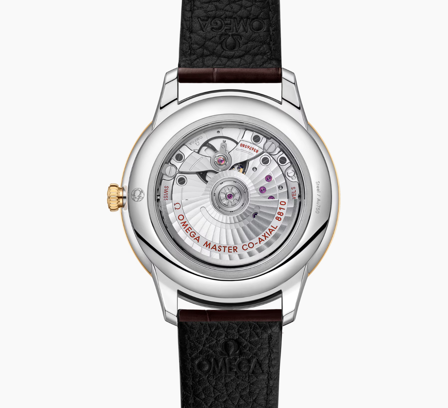 This Master Chronometer certified watch is presented on a brown leather strap and is driven by the OMEGA Master Co-Axial Calibre 8810, which can be admired through the scratch-resistant sapphire crystal caseback.