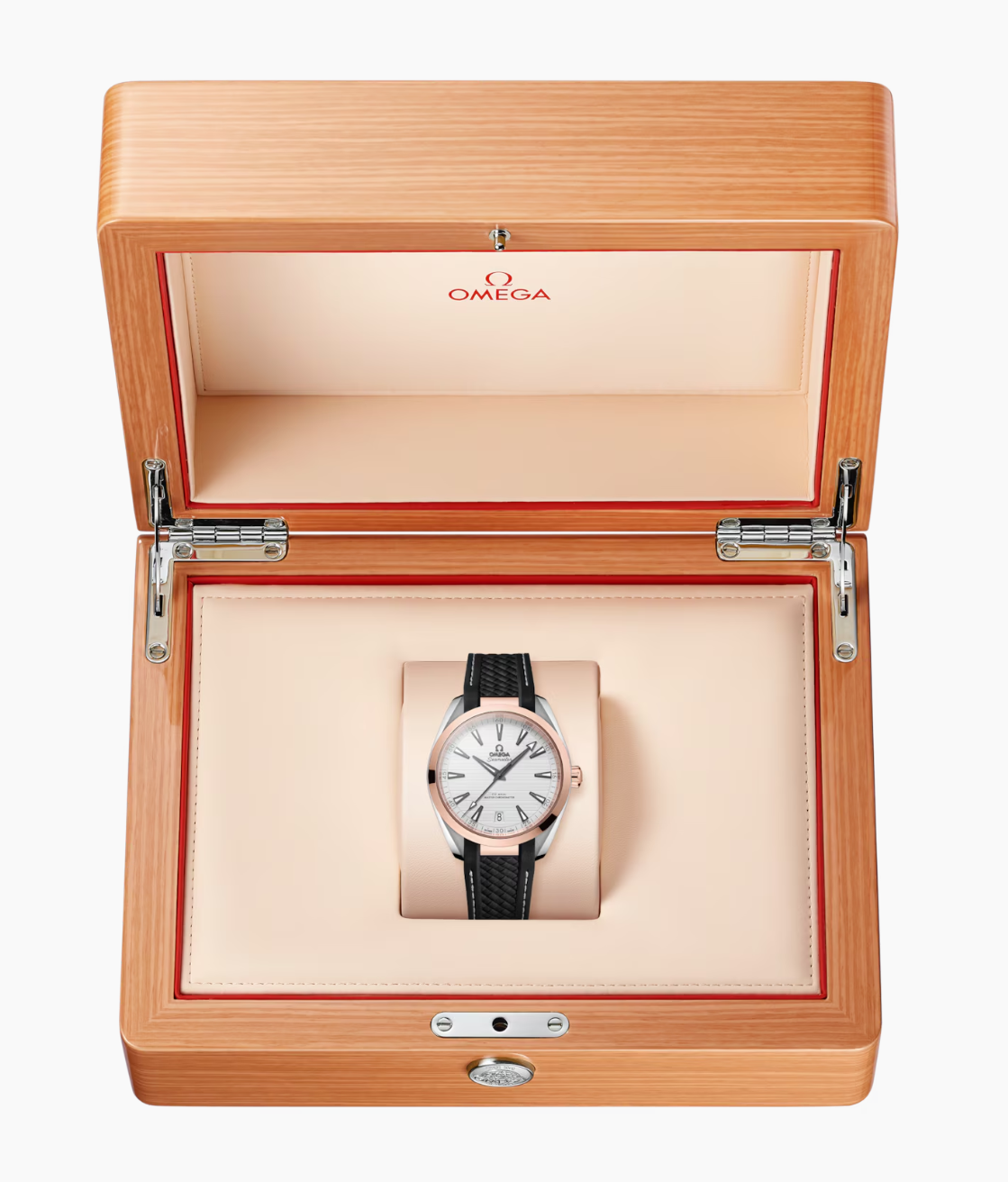 The grey strap is made from structured rubber and includes grey lining and an additional 18K Sedna™ gold link which integrates it to the case. This certified chronometer is powered by the OMEGA Master Chronometer calibre 8900, certified at the industry’s highest standard by the Swiss Federal Institute of Metrology (METAS).
