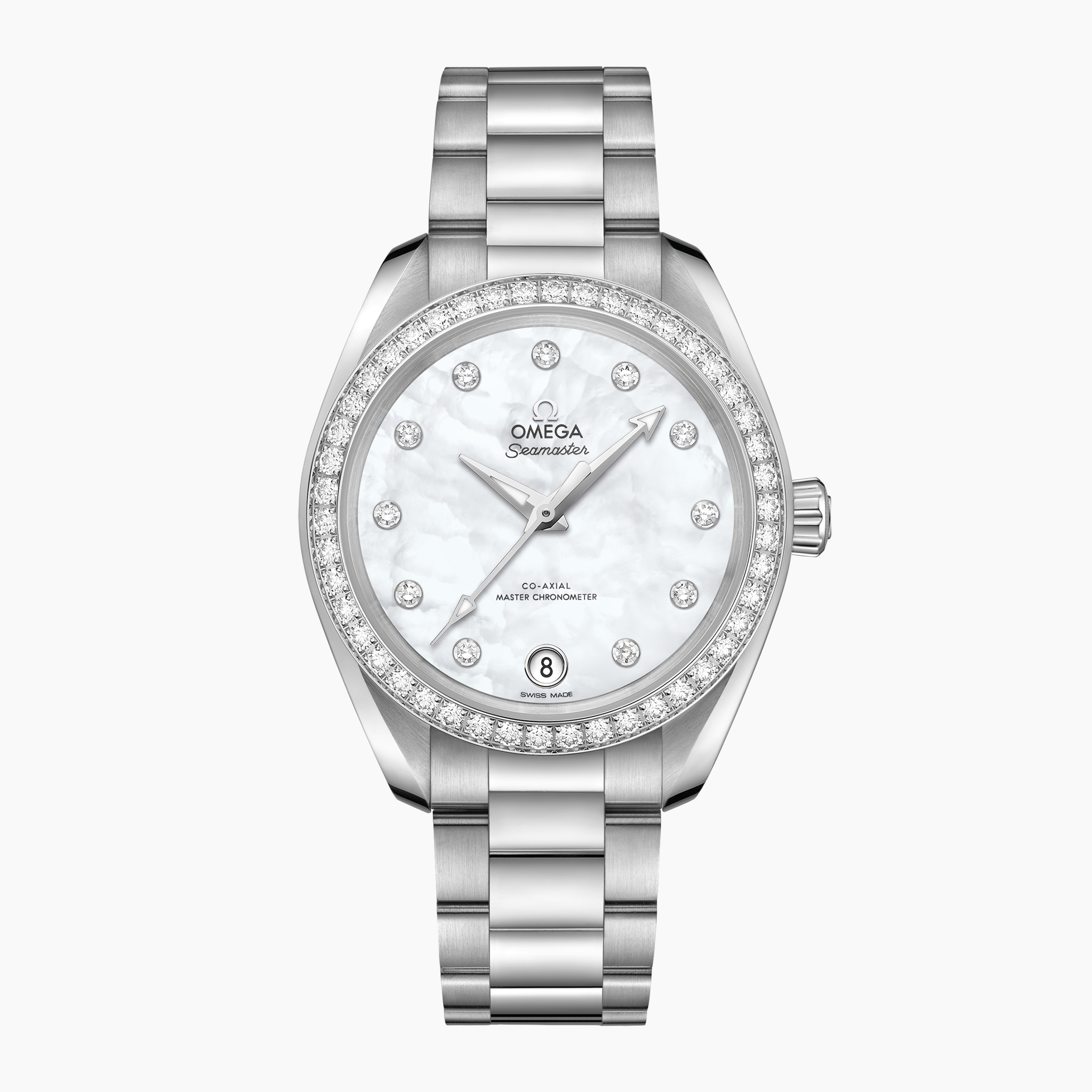 Encircled by diamonds, the ladies' Seamaster Aqua Terra is the true definition of elegance.