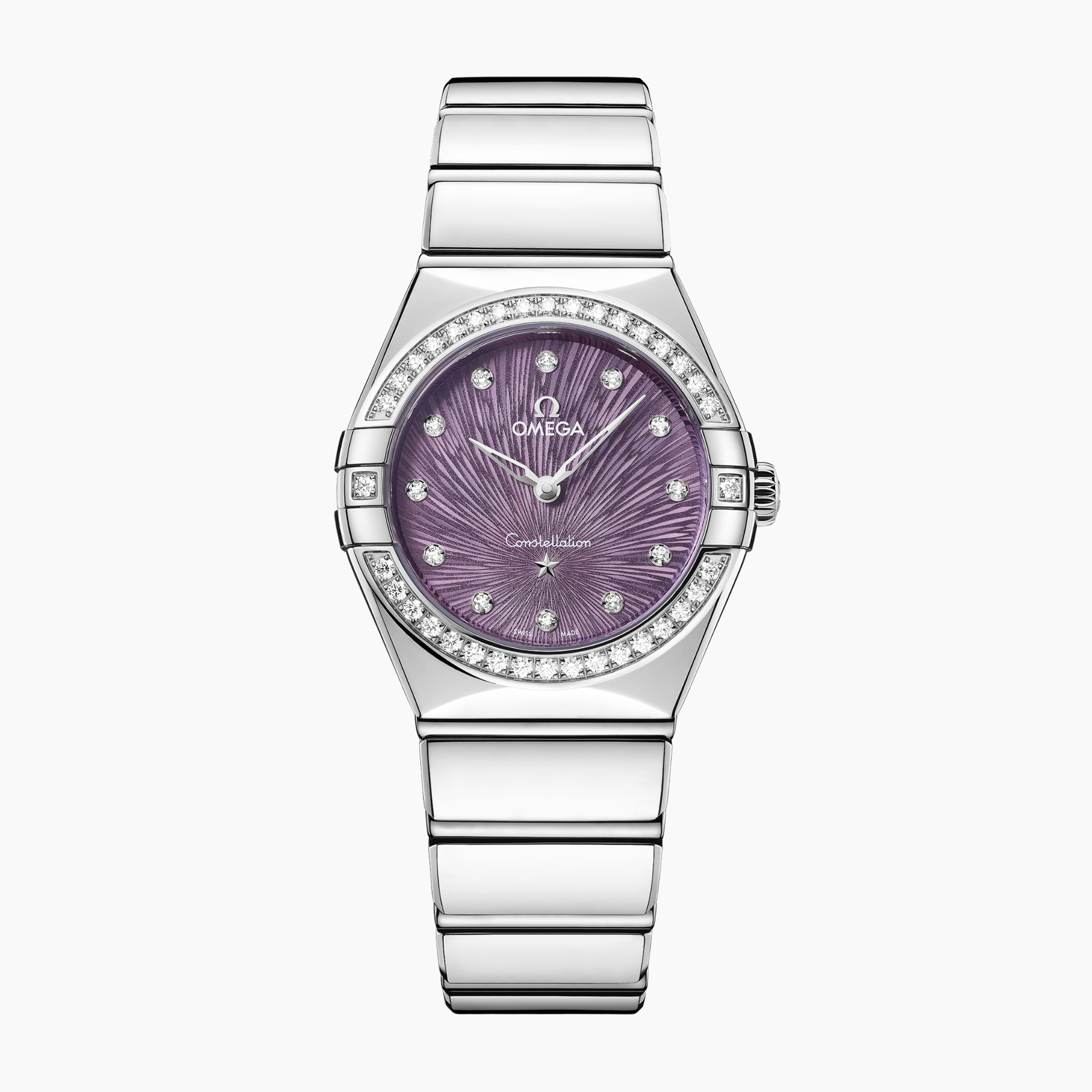 This 28 mm model is crafted in stainless steel and features a radiant diamond-paved bezel. The PVD purple dial has been given a distinctive Supernova pattern through electrochemical etching, while other details include 18K white gold hands and star, and diamond hour markers in 18K white gold holders.