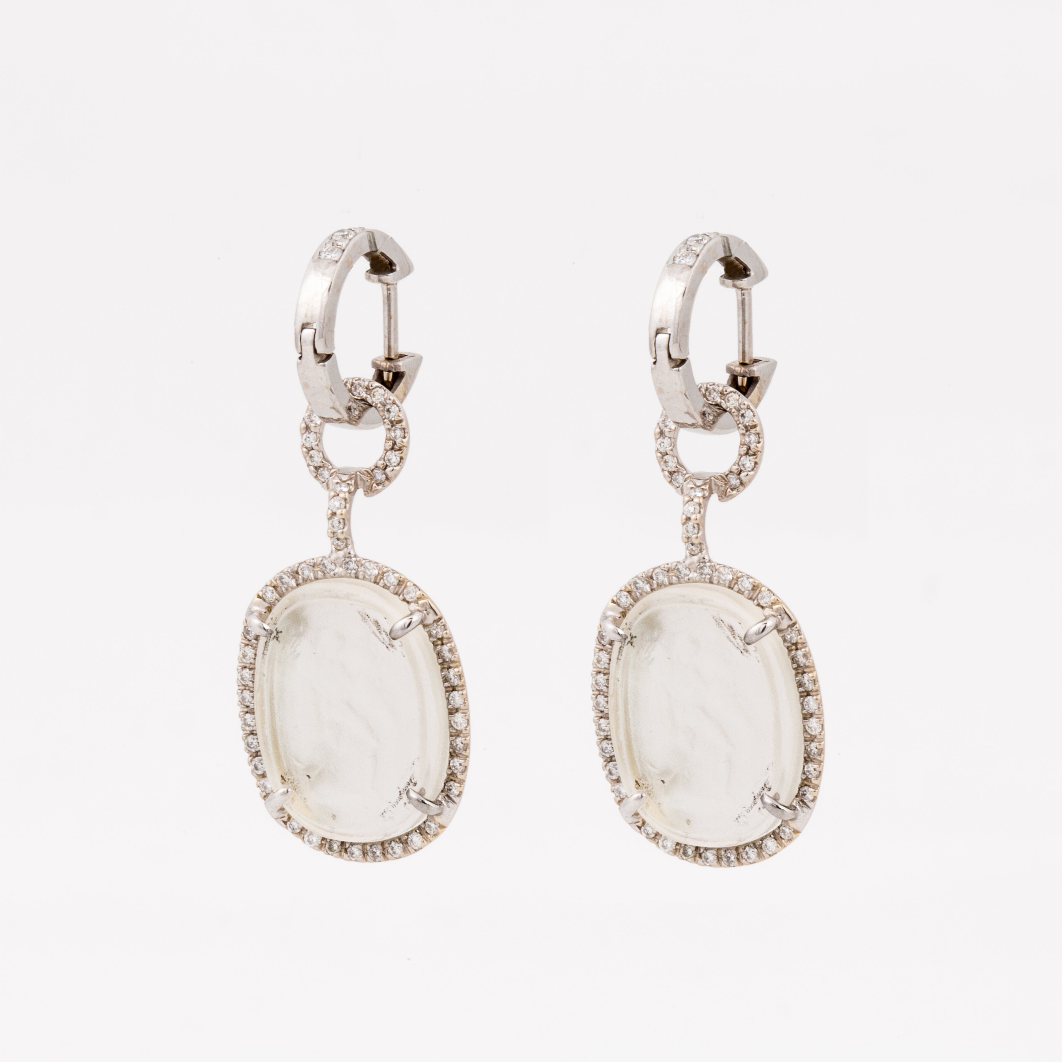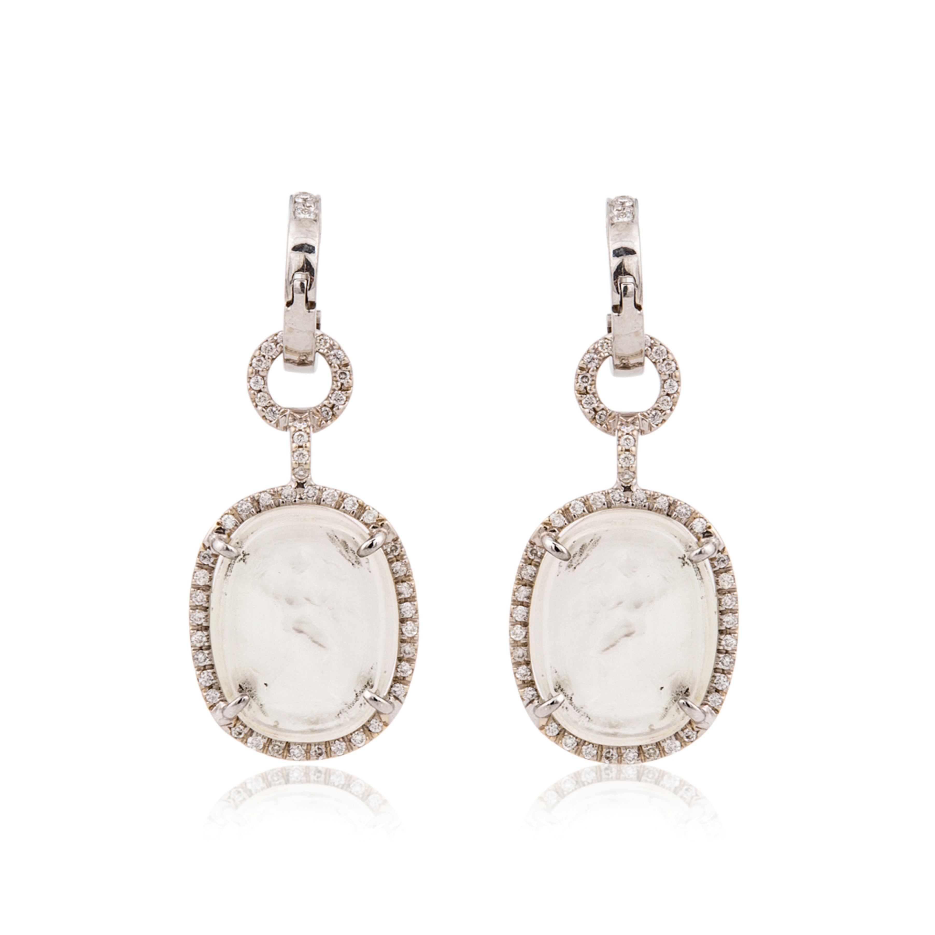 A pair of Mazza day/night huggie earrings with pave diamonds and removable venetian glass dangles, set in 14K white gold.