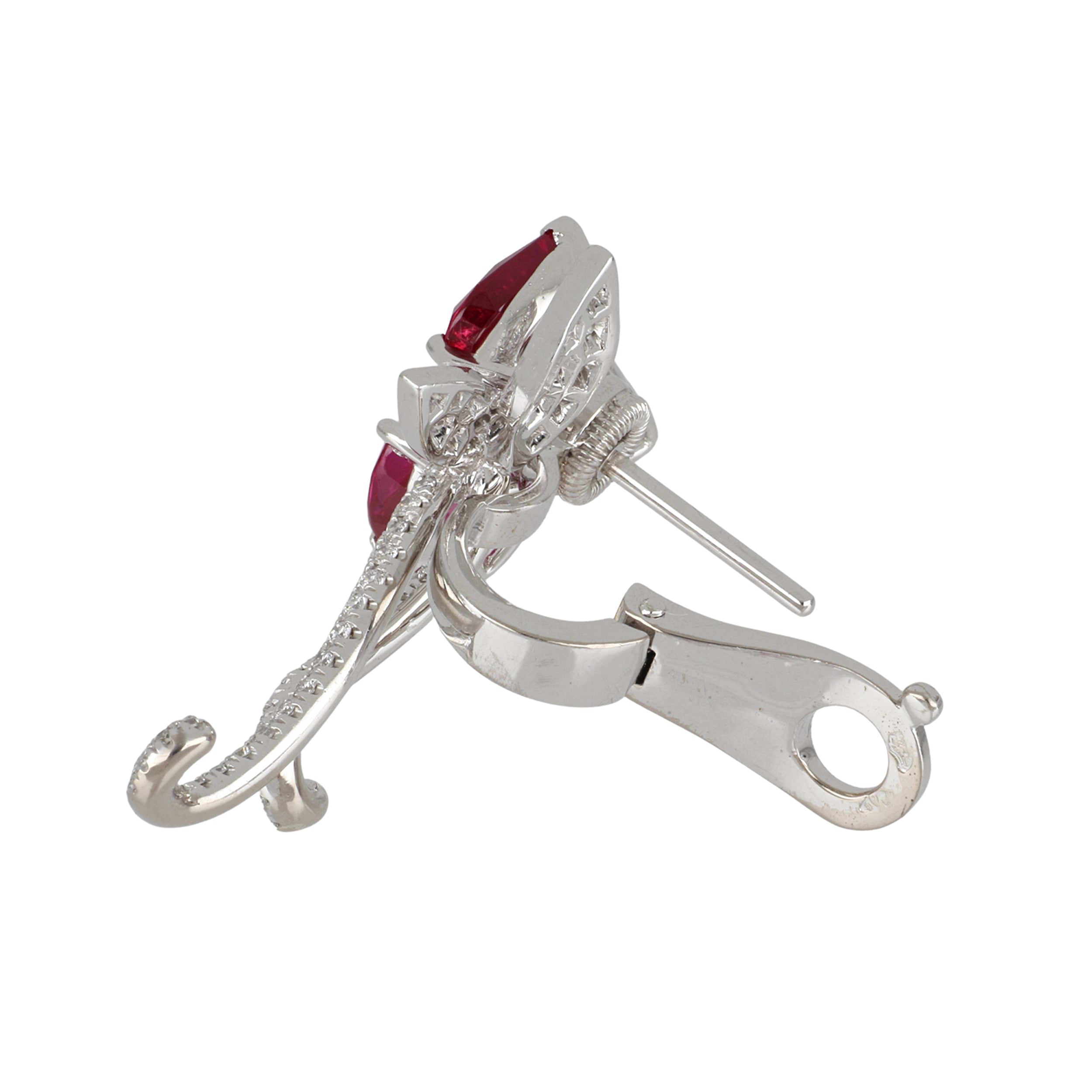 A pair of estate ruby and diamond earrings, set in platinum and 18K white gold. French Marks, circa 2000.