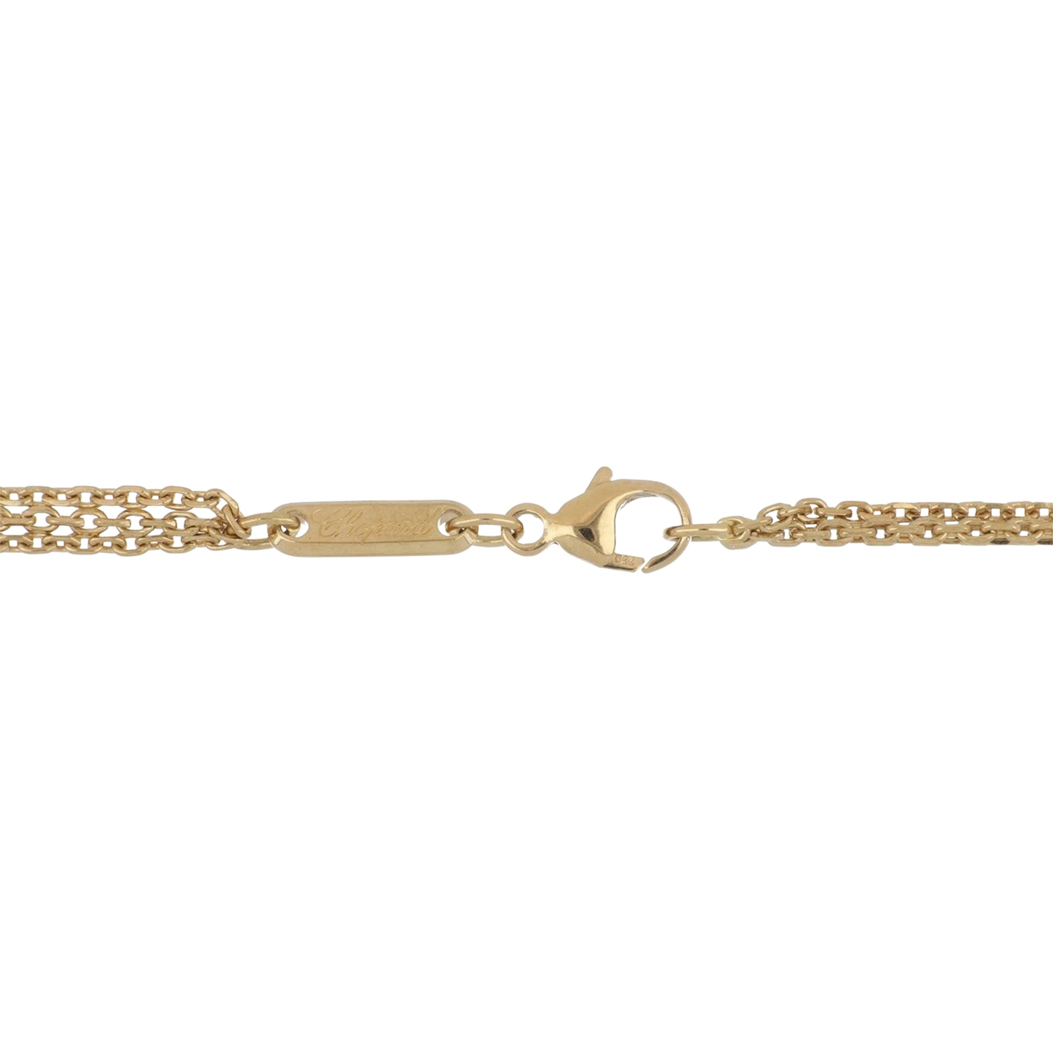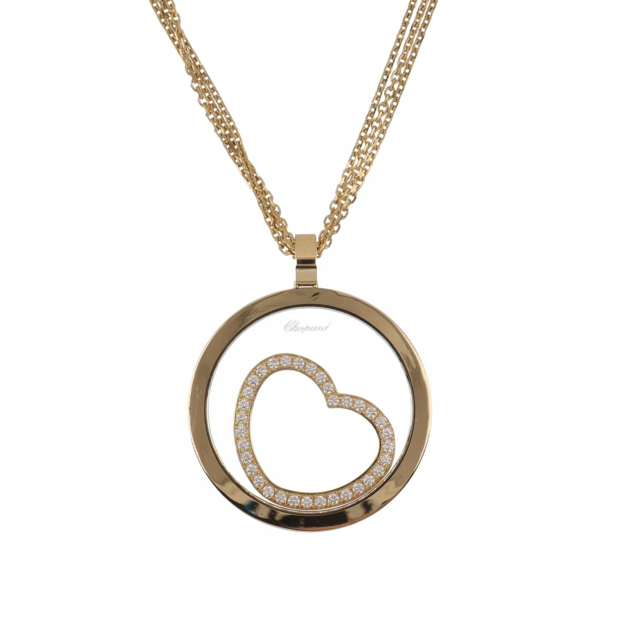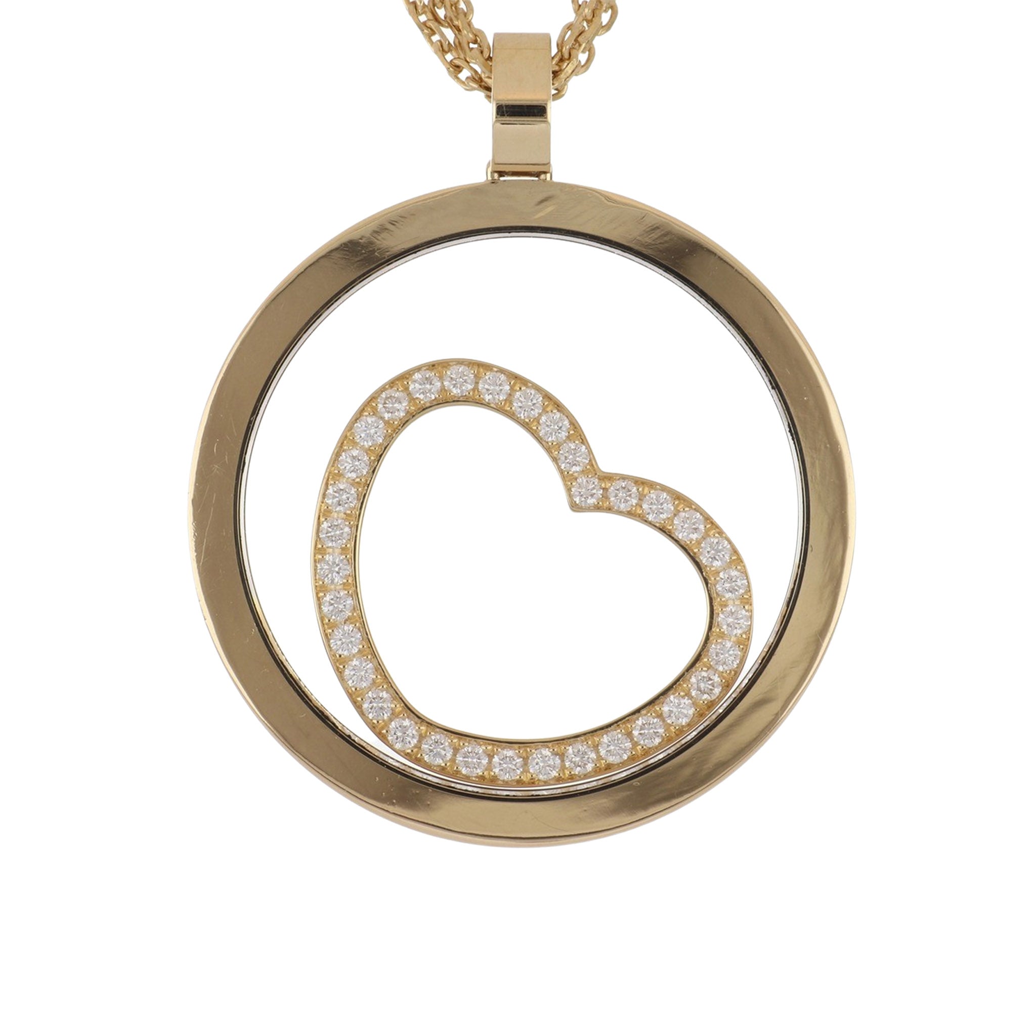 An estate Chopard "Happy Diamond" floating heart necklace with round brilliant-cut diamonds in 18K yellow gold.