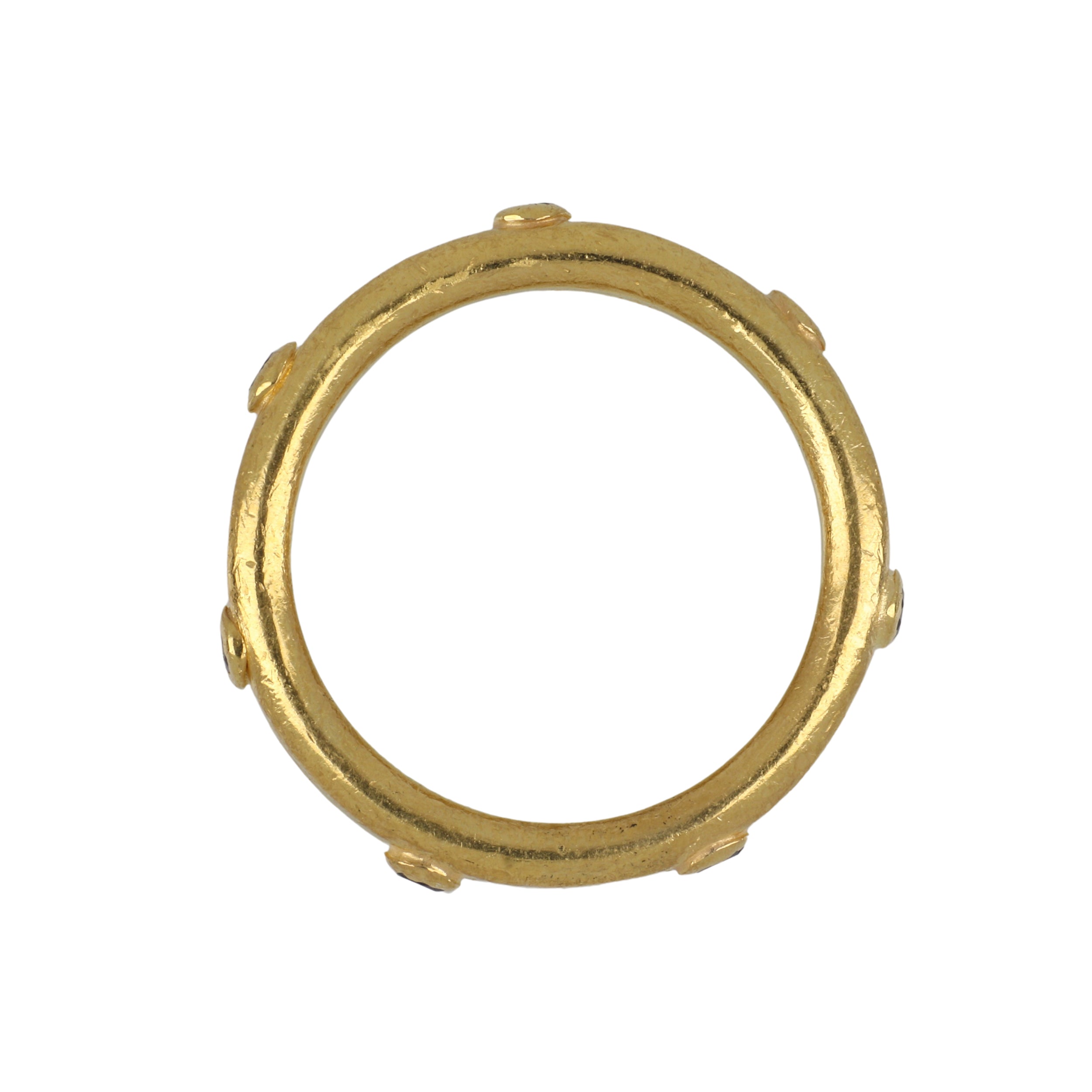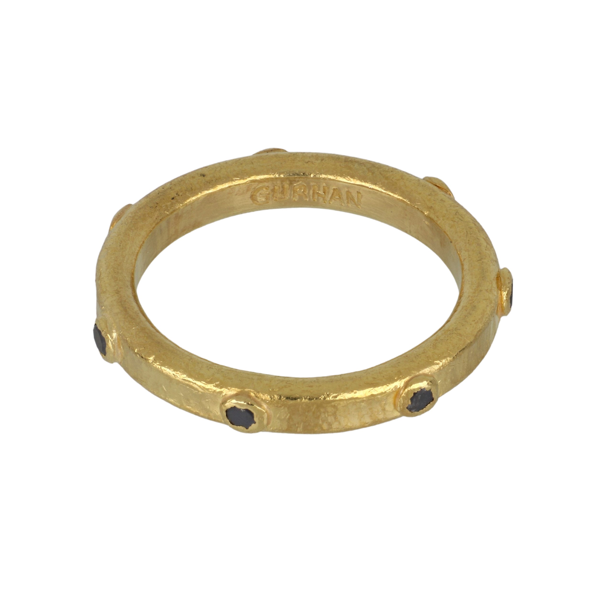 An estate Gurhan black round-cut diamond eternity band set in 24K yellow gold. Circa 2010.