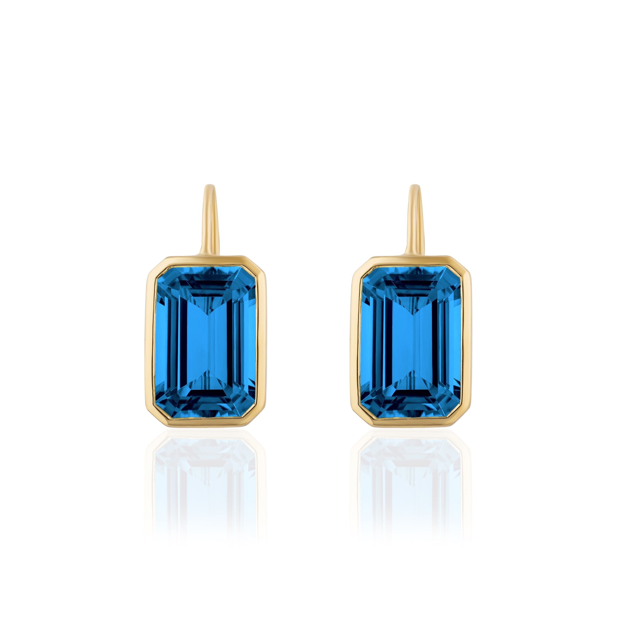 A pair of Goshwara drop earrings featuring emerald-cut London blue topaz in 18K yellow gold.