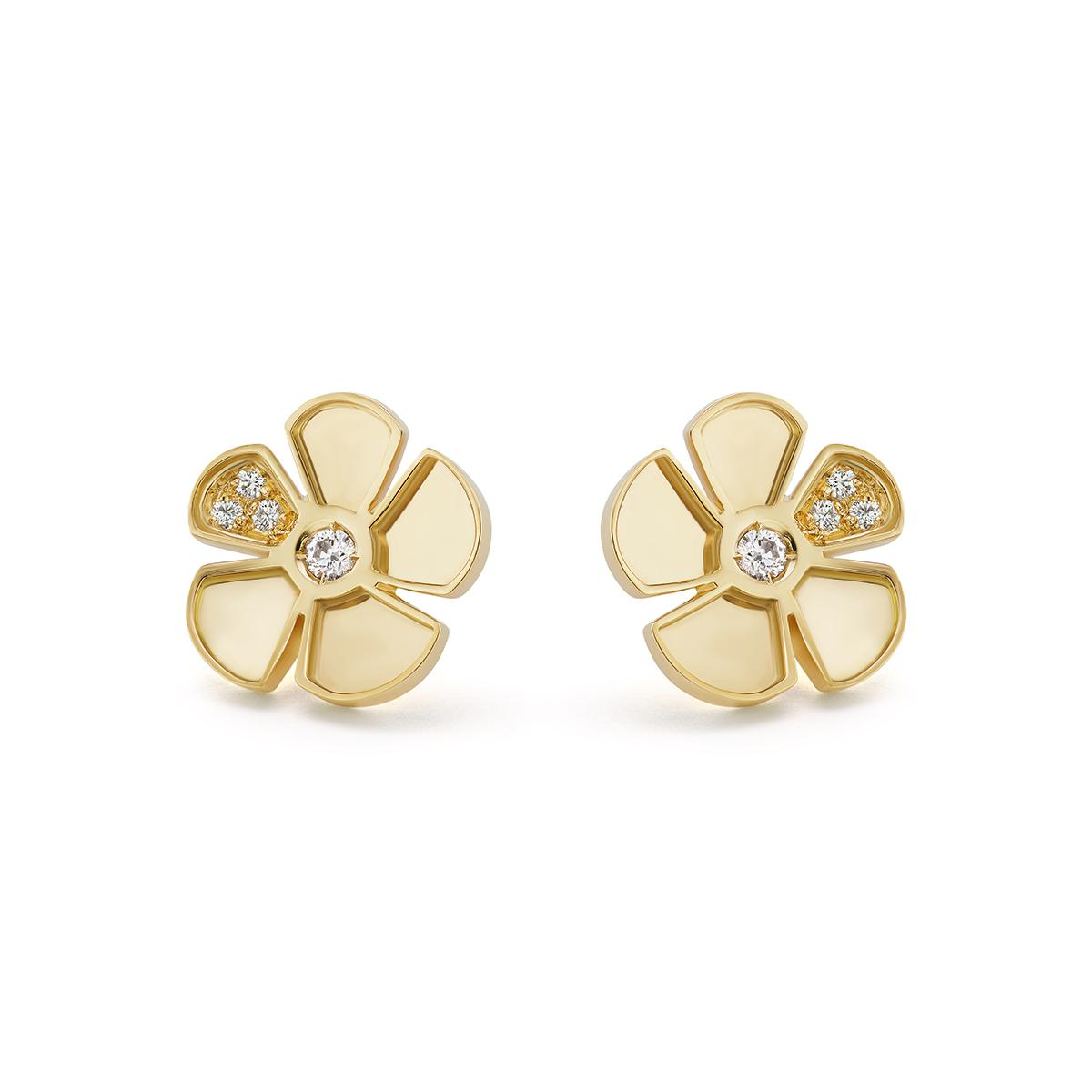 L. Klein 18K Gold Diamond Alessia Flower Stud Earrings