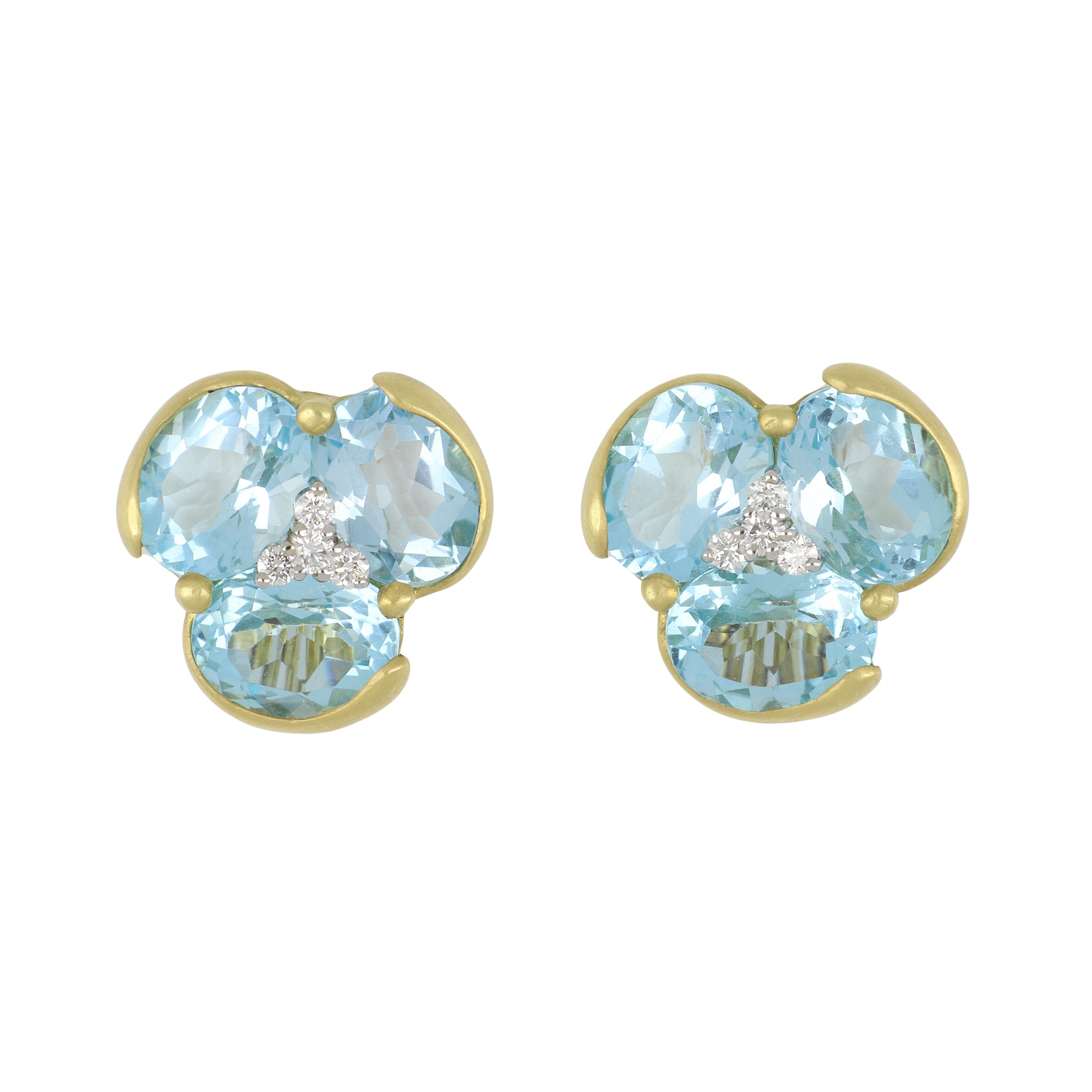 Mazza 14K Gold Blue Topaz Cluster Earrings with Diamonds