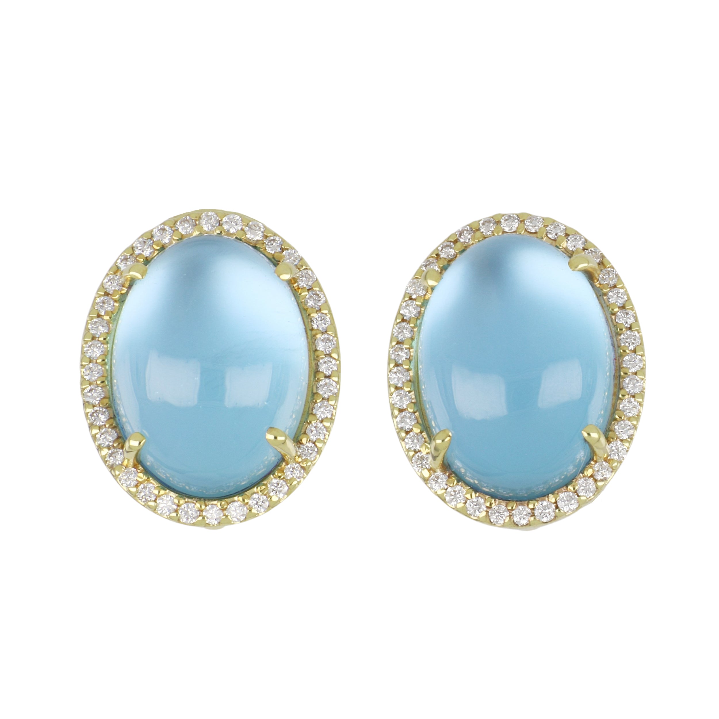 Mazza 14K Cabochon Blue Topaz Earrings with Diamonds