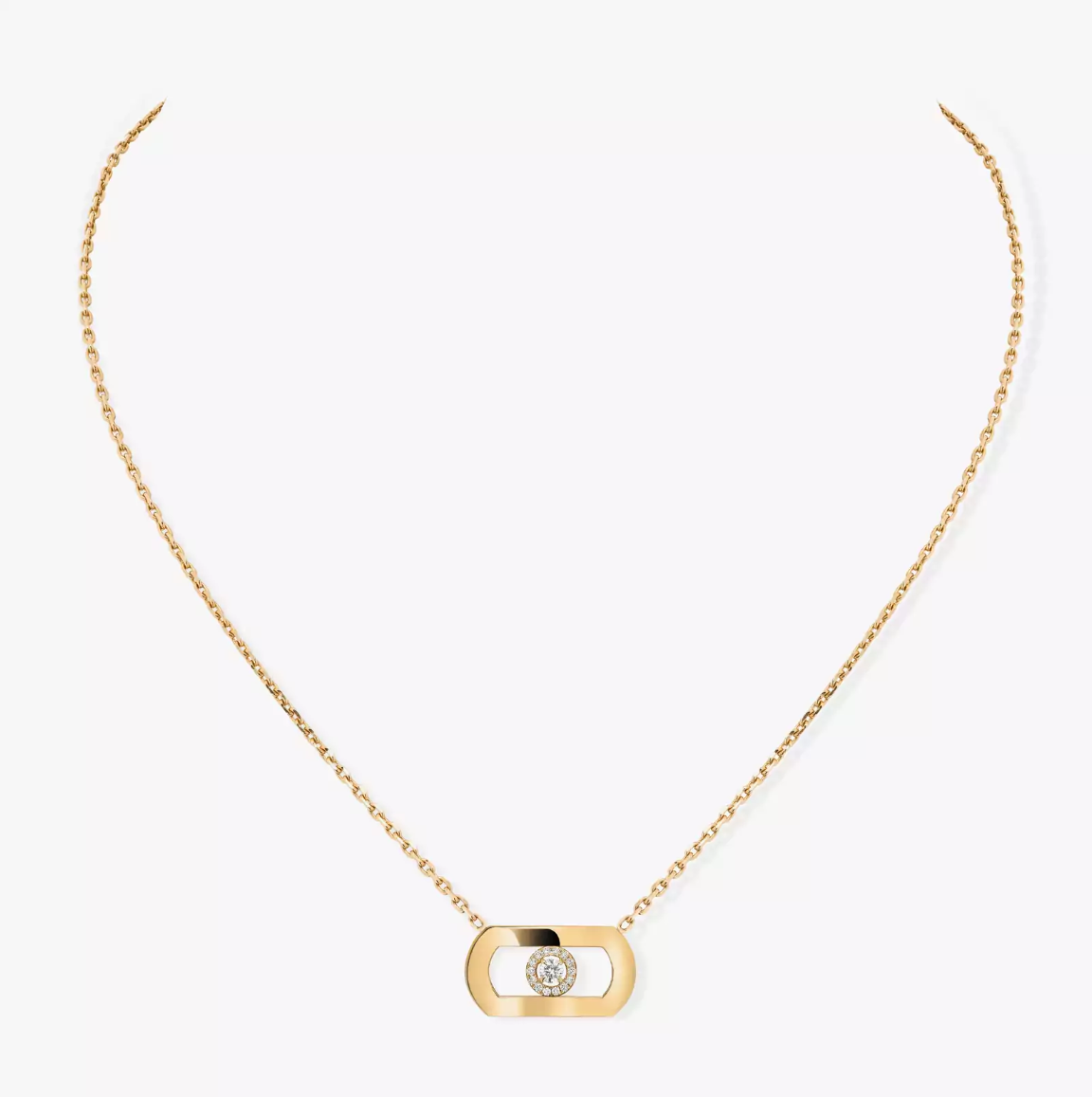 A Messika "So Move" collection 18 karat yellow gold diamond sliding pendant necklace.