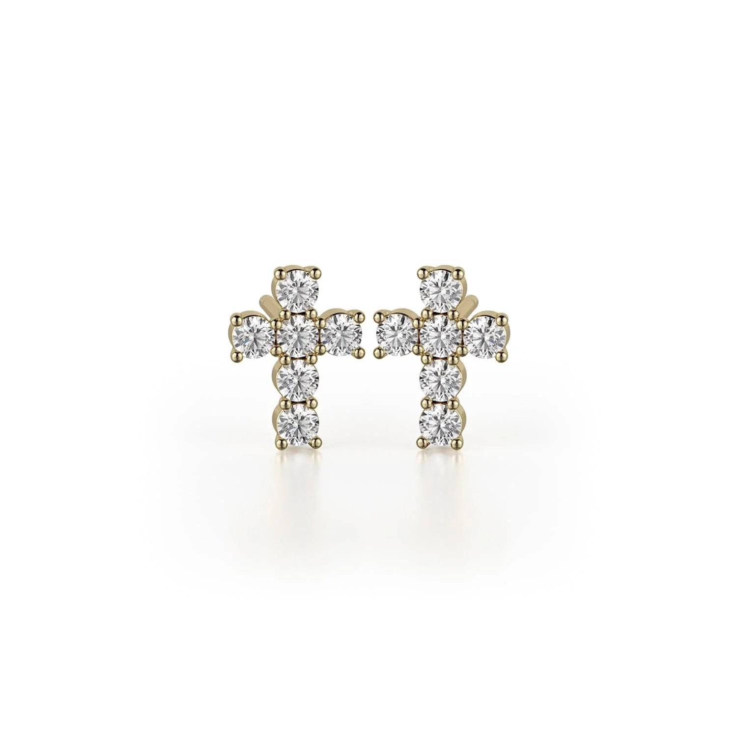 Michael M 14K Gold Mini Diamond Cross Earrings