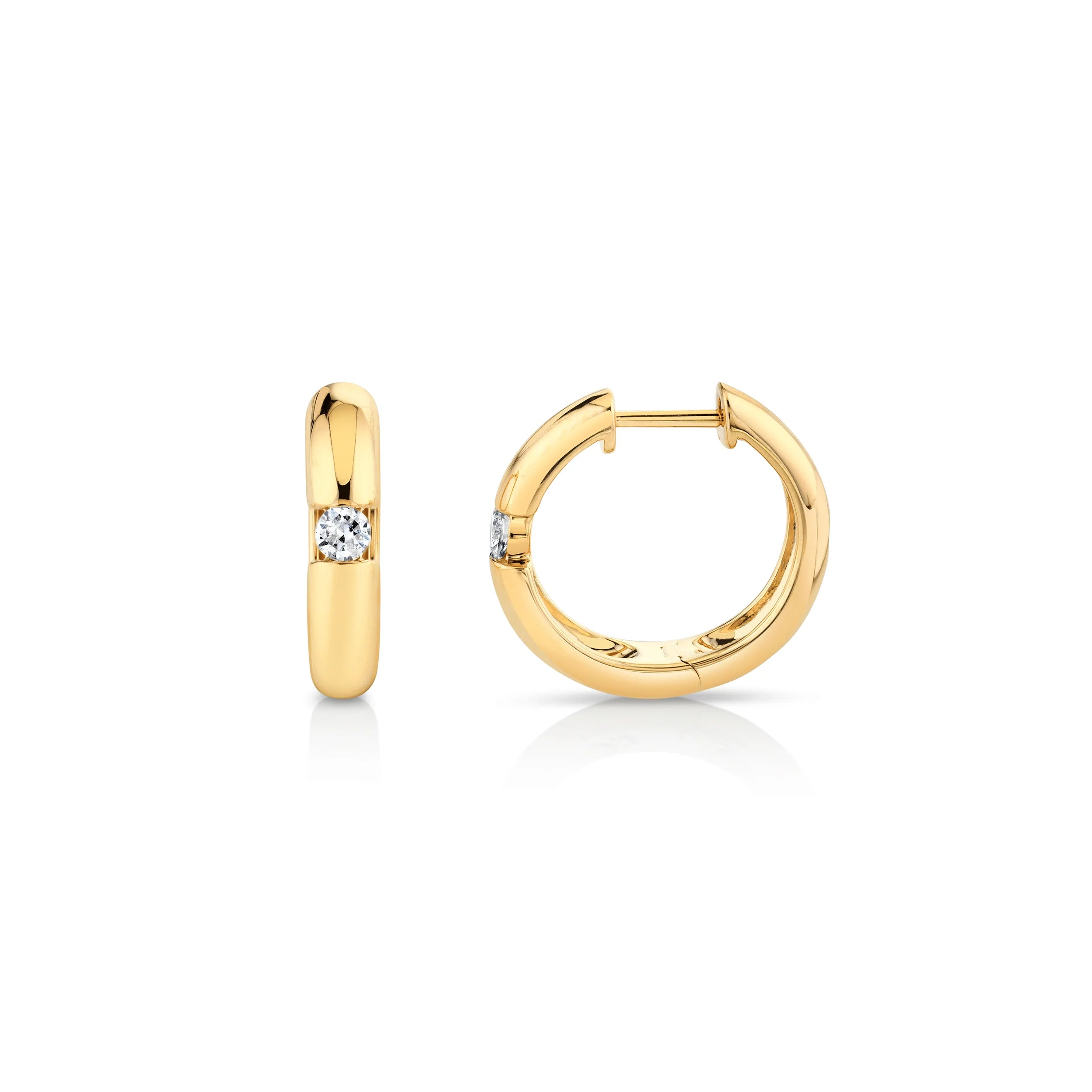 A pair of Michael M Orb split diamond huggies, in 14K yellow gold.