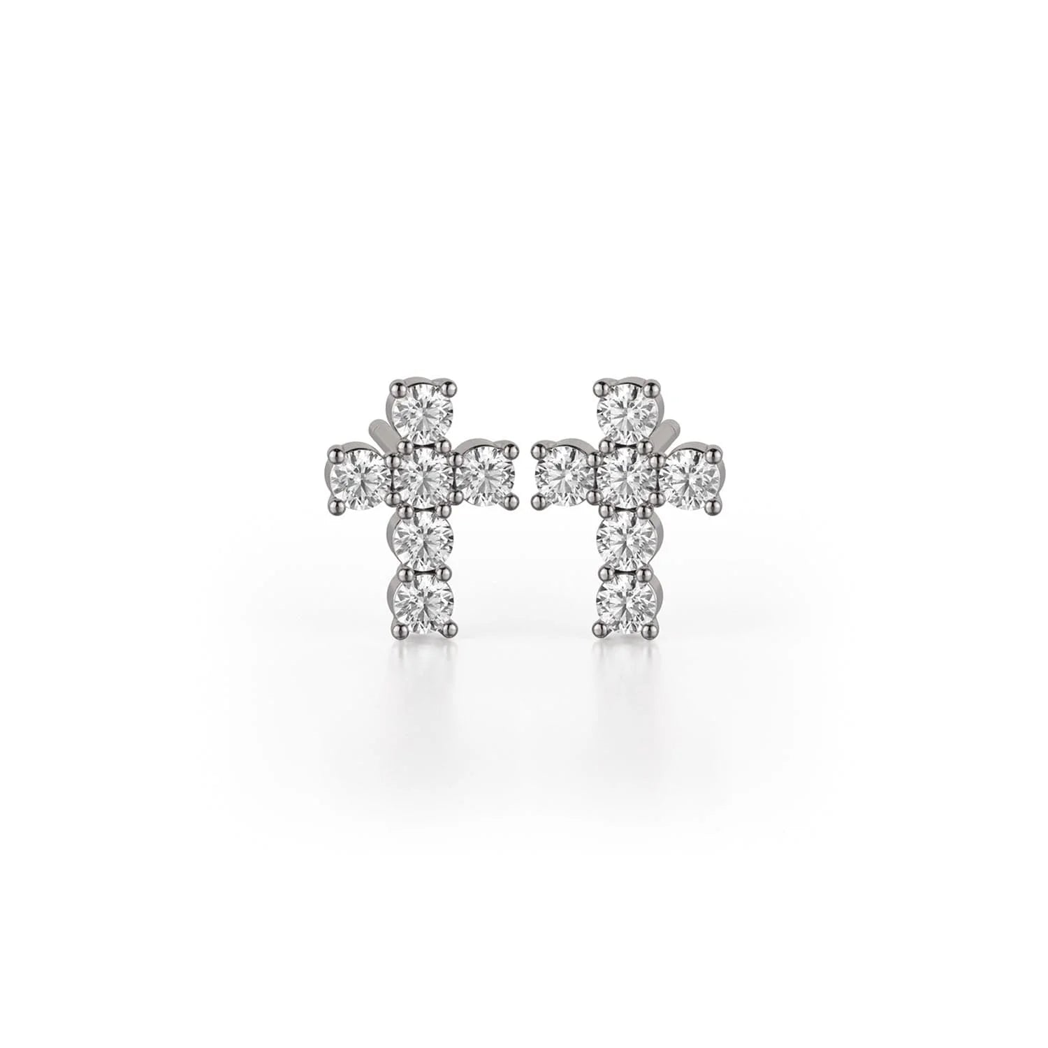 Michael M 18K White Gold Diamond Mini Cross Earrings