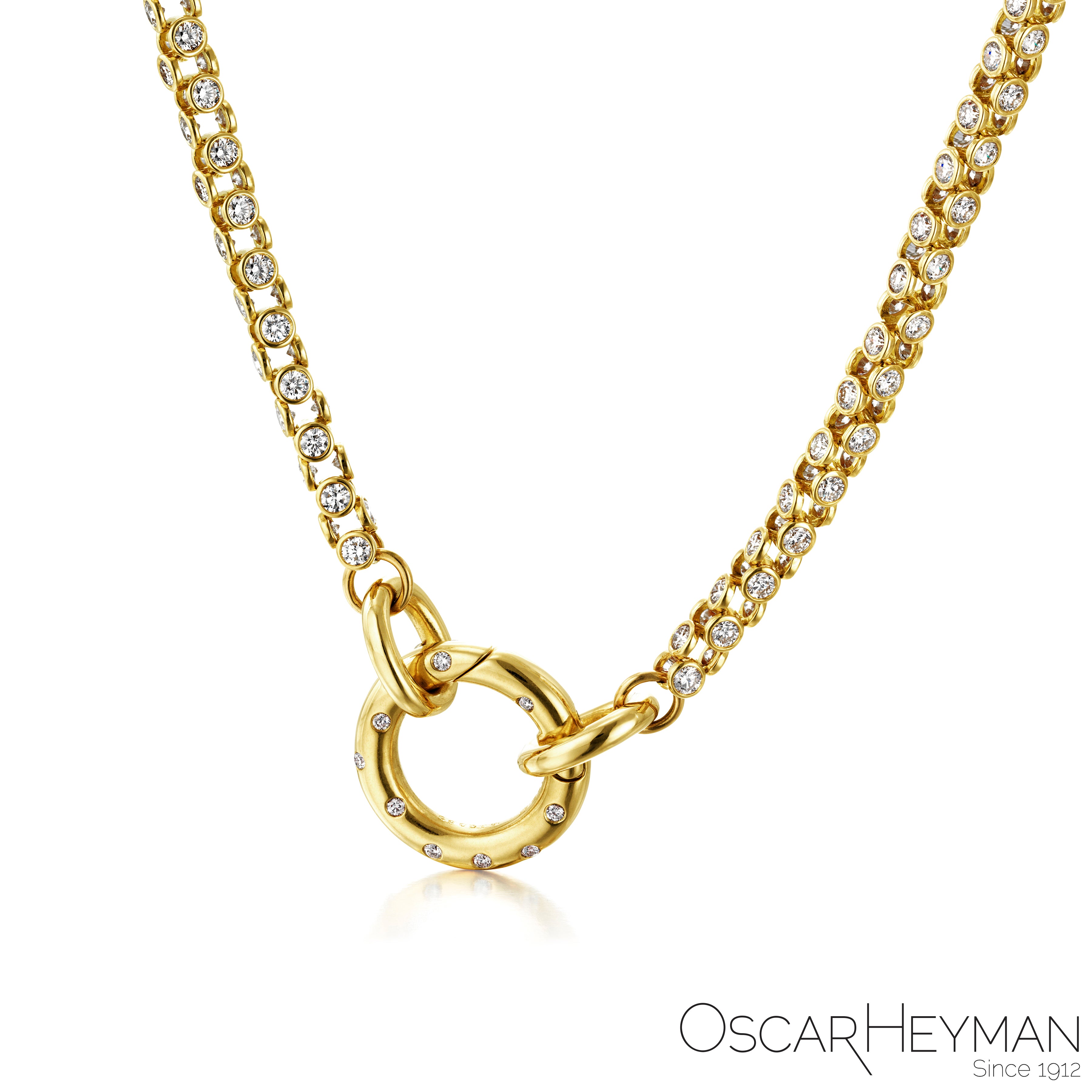 An Oscar Heyman bezel-set round brilliant-cut diamond link necklace in 18K yellow gold. Signed: Oscar Heyman.