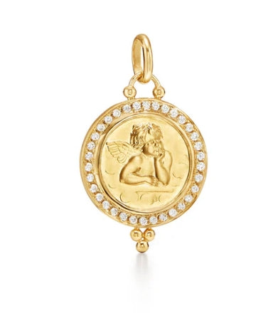 A Temple St Clair 18K yellow gold 'Diamond Pavé Angel' medium pendant.