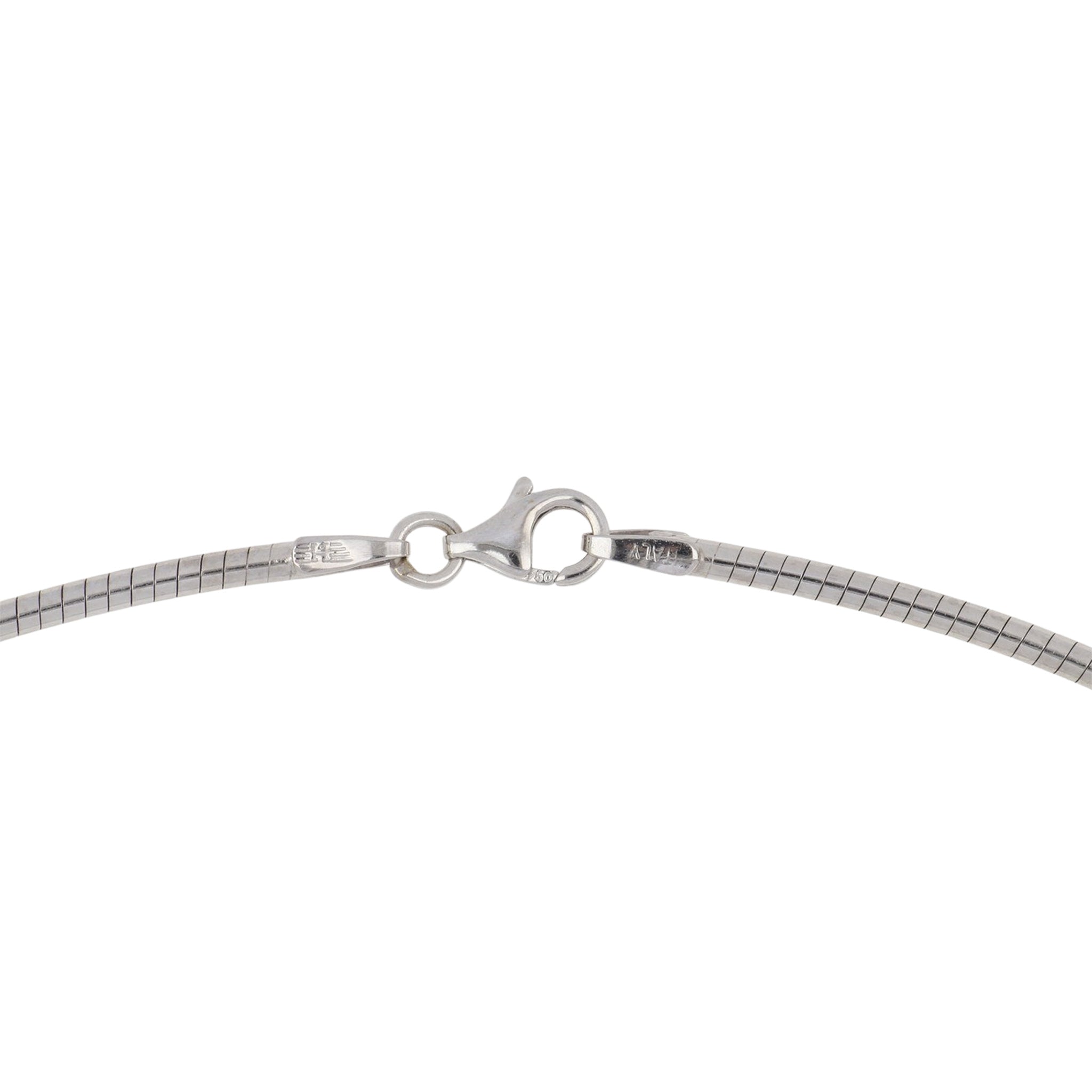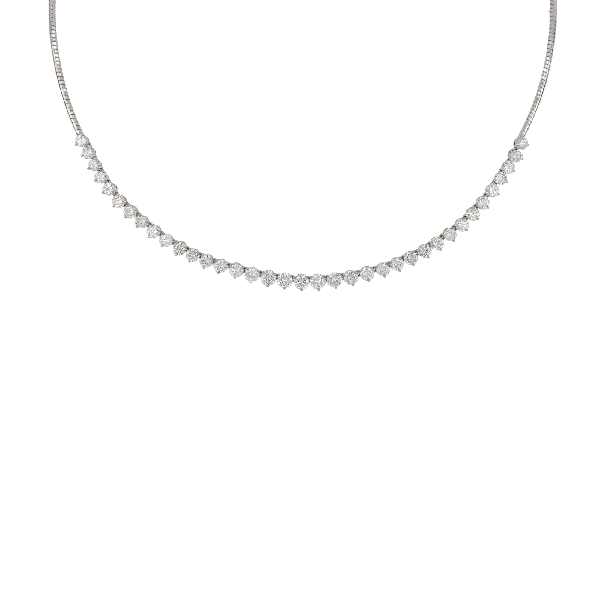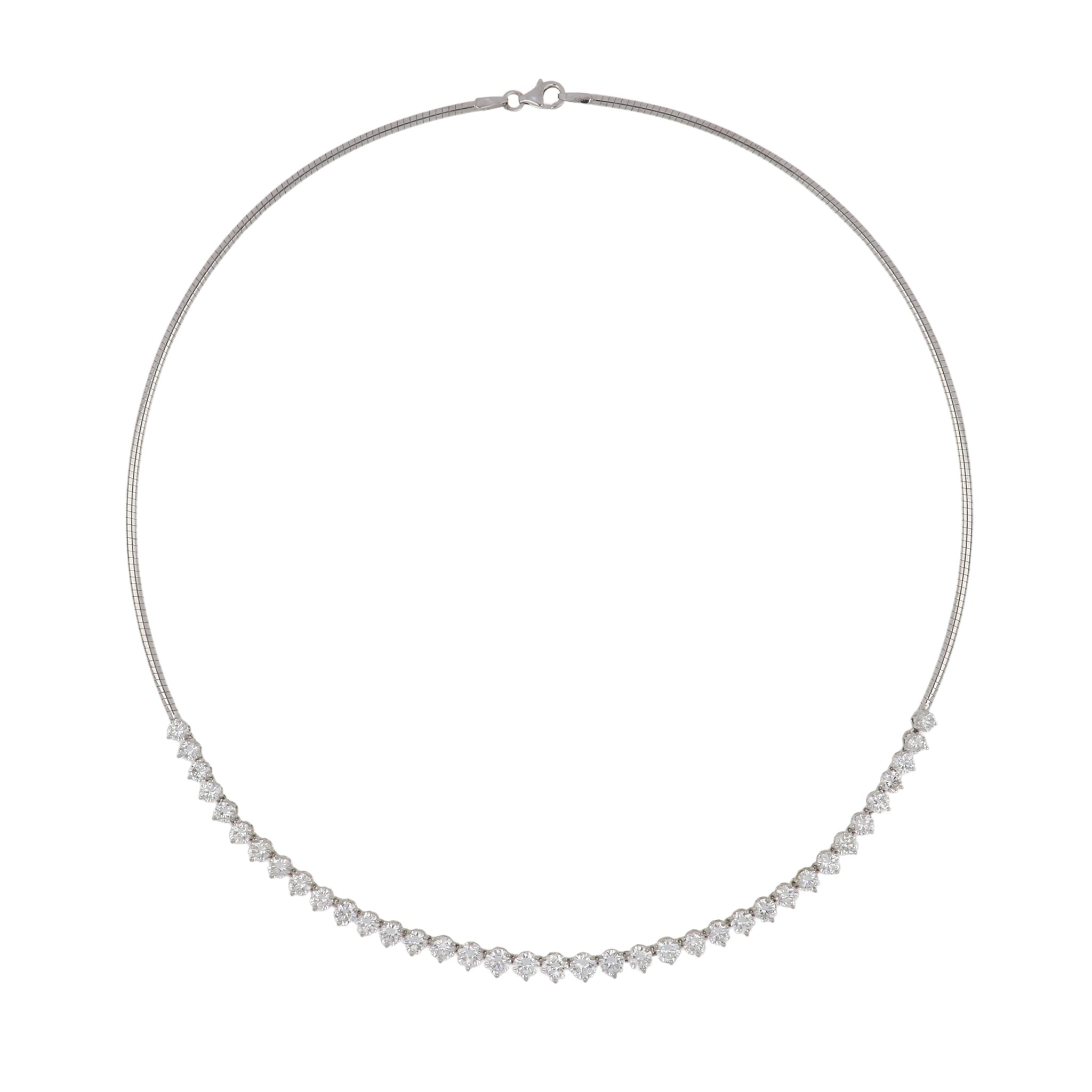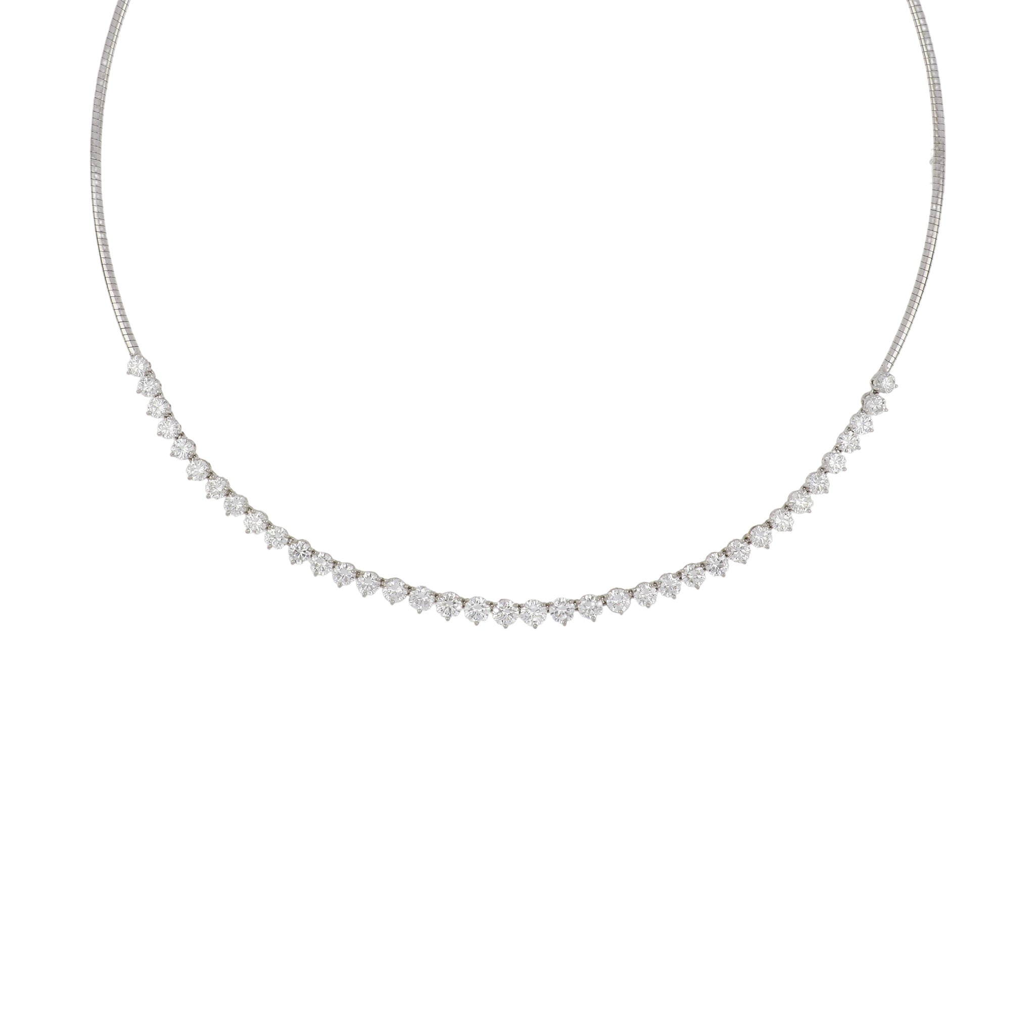 A diamond necklace on an omega chain, set in 18K white gold (omega chain) & platinum (diamonds).