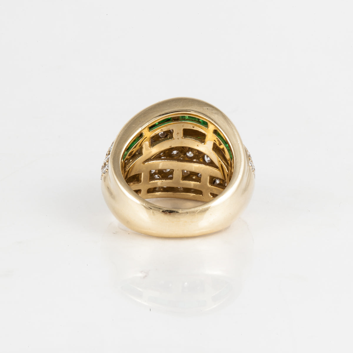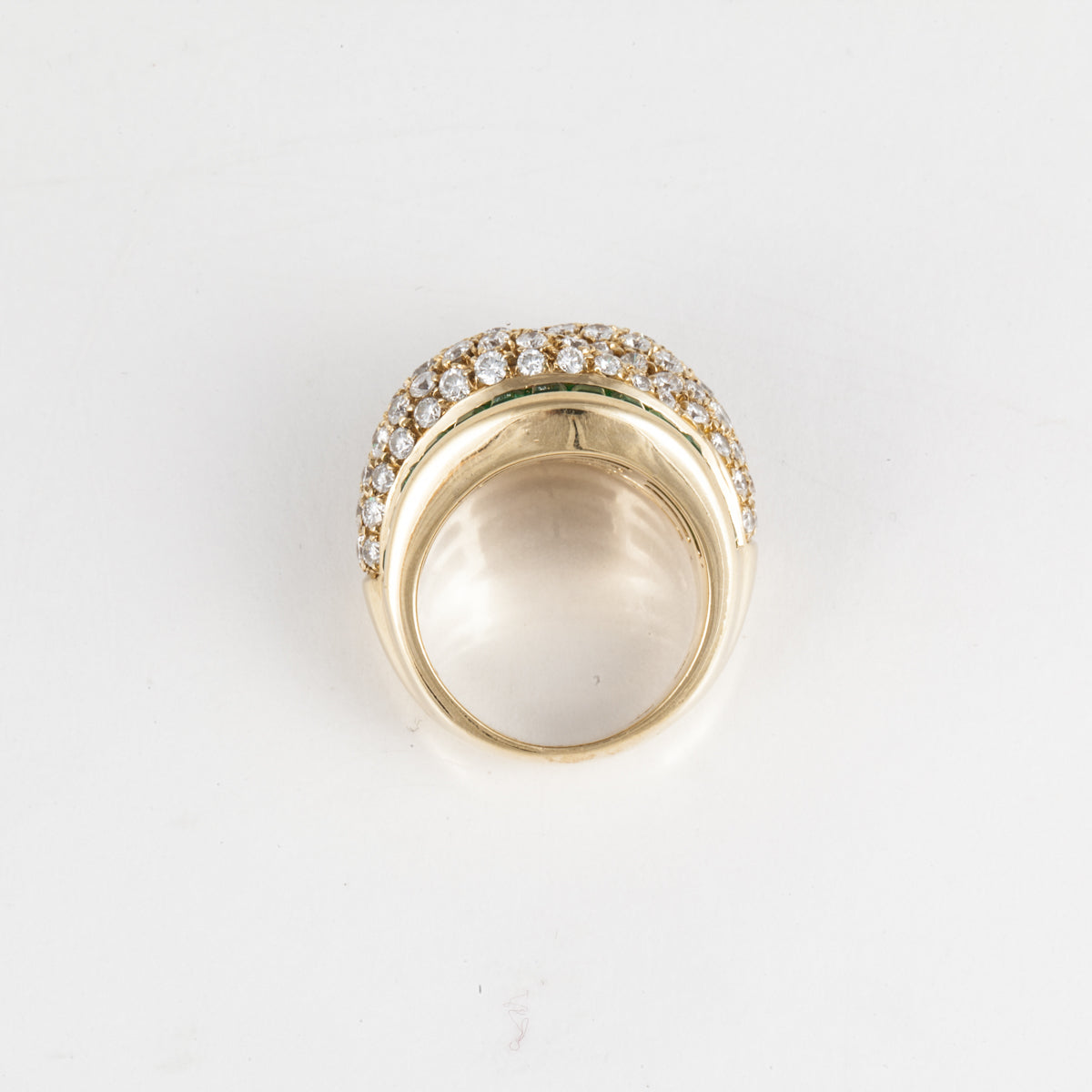 Tiffany & Co. 18K Gold Diamond and Emerald Dome Ring