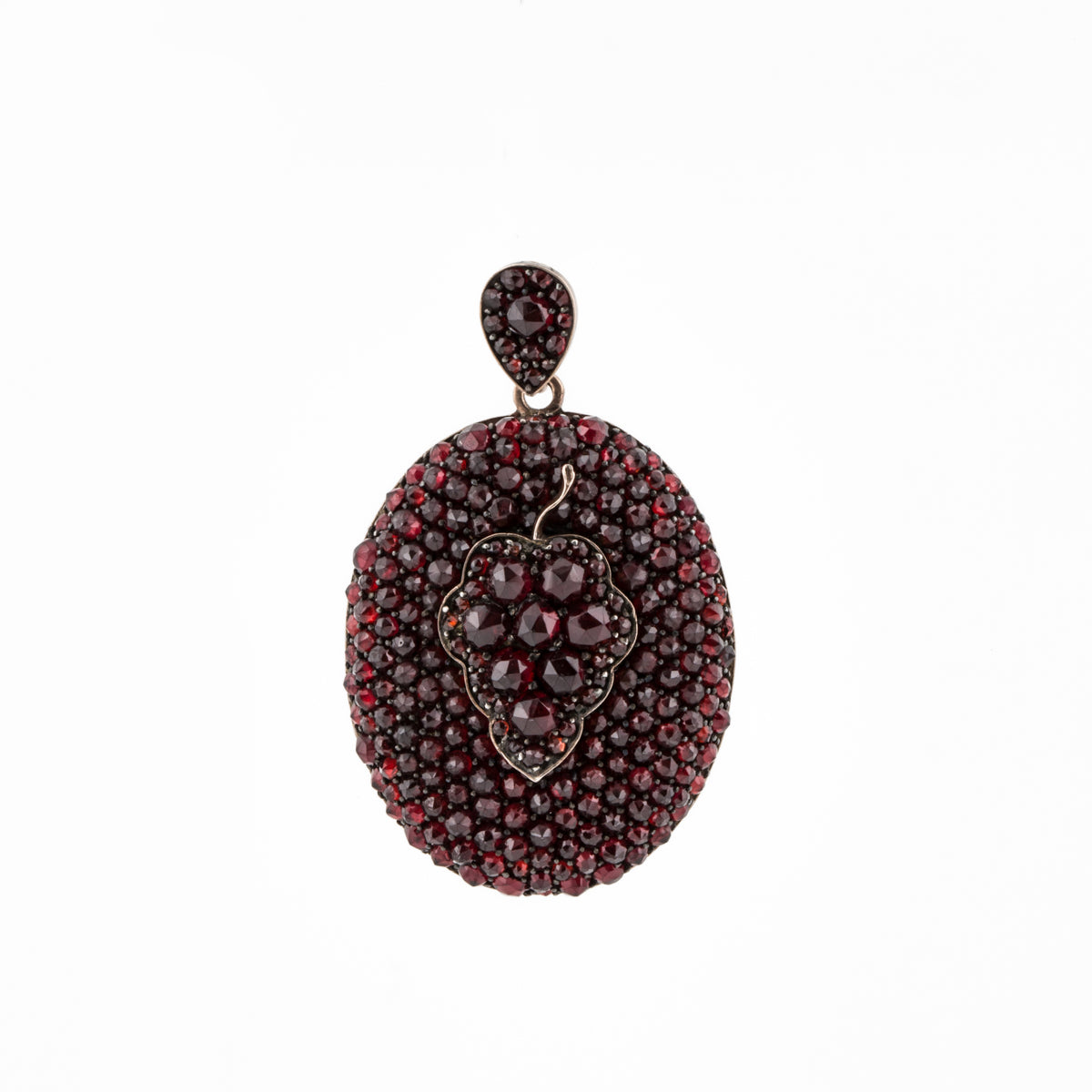 A Victorian Bohemian gold and garnet locket with grape cluster motif. Circa 1865.Antique Collection