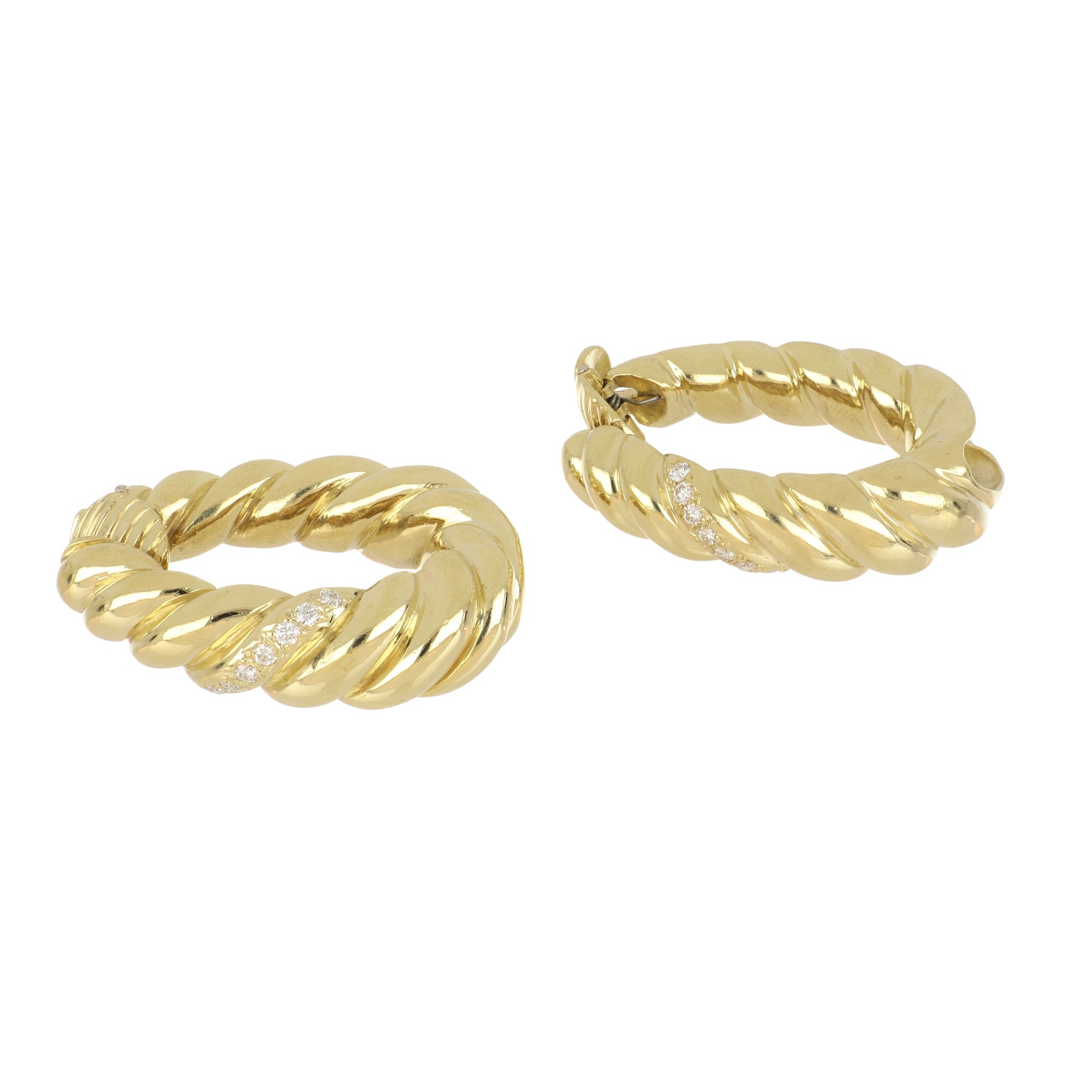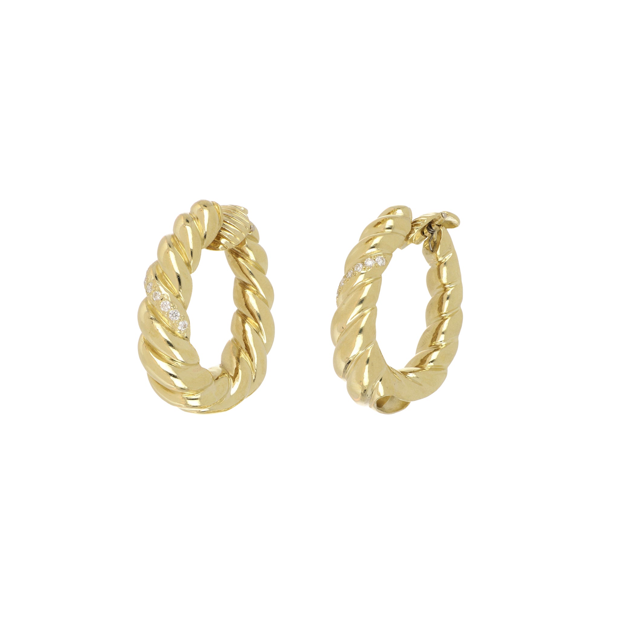 Vintage 1970s Van Cleef & Arpels 18K Gold Diamond Elongated Twist Hoop Earrings