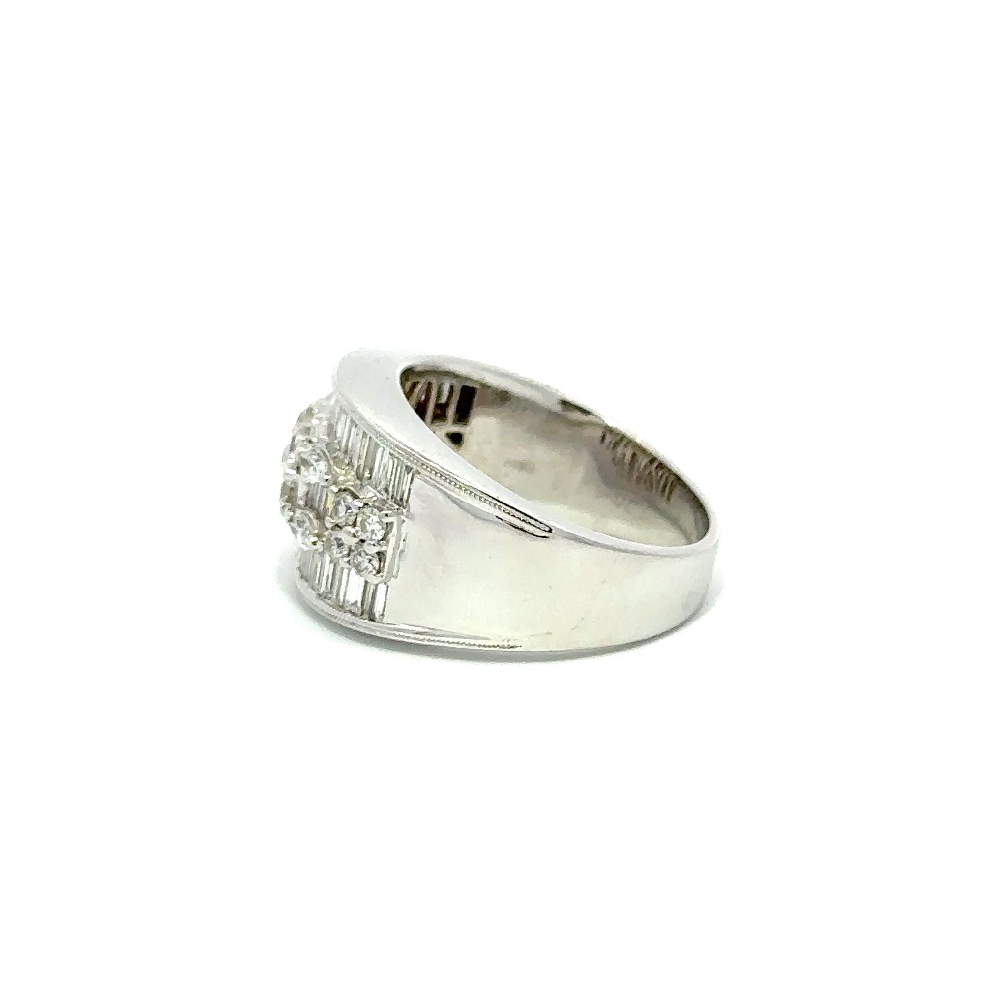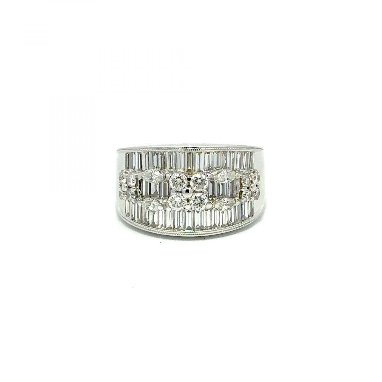 A vintage, fancy and round brilliant-cut diamond band, set in 18k white gold. Circa 1990.