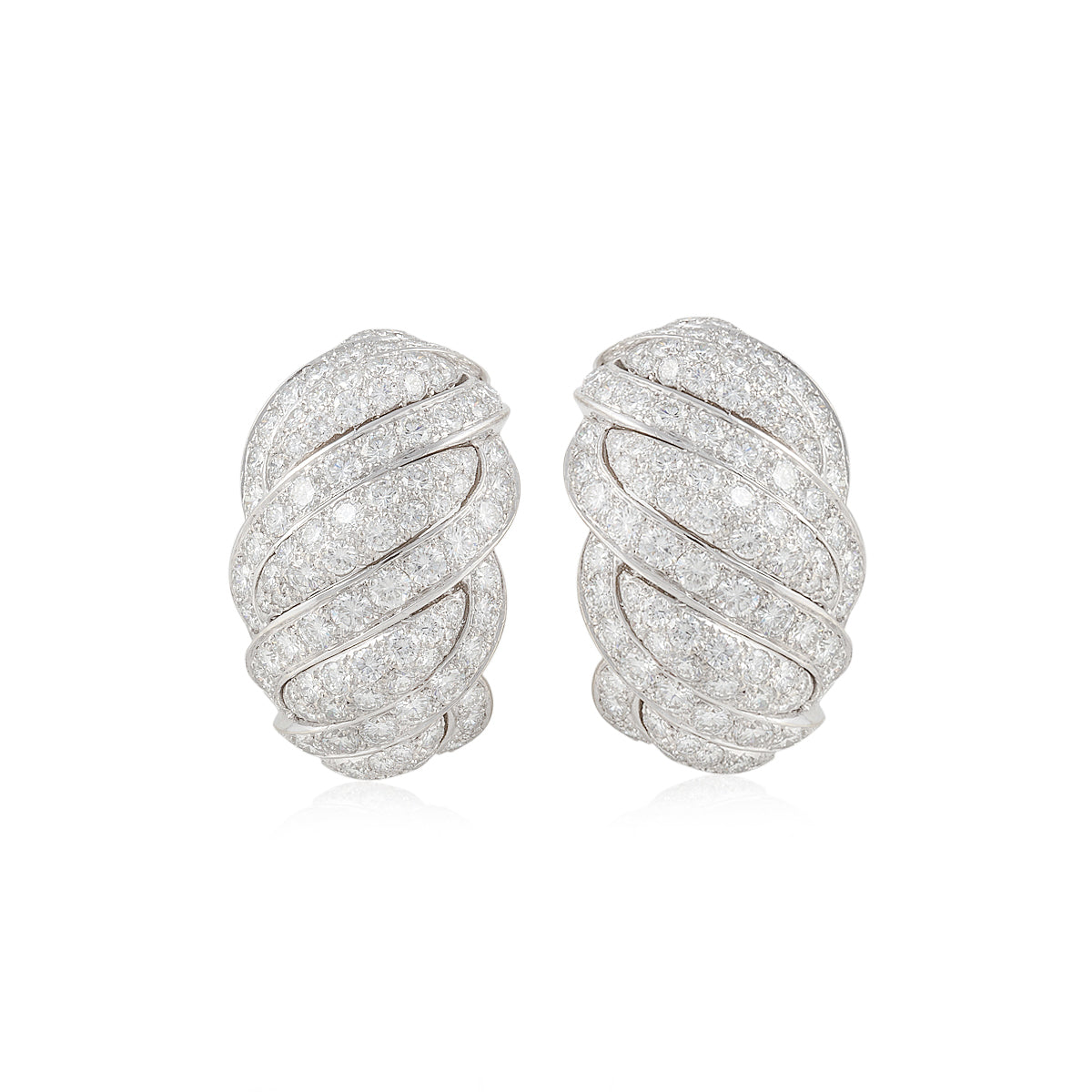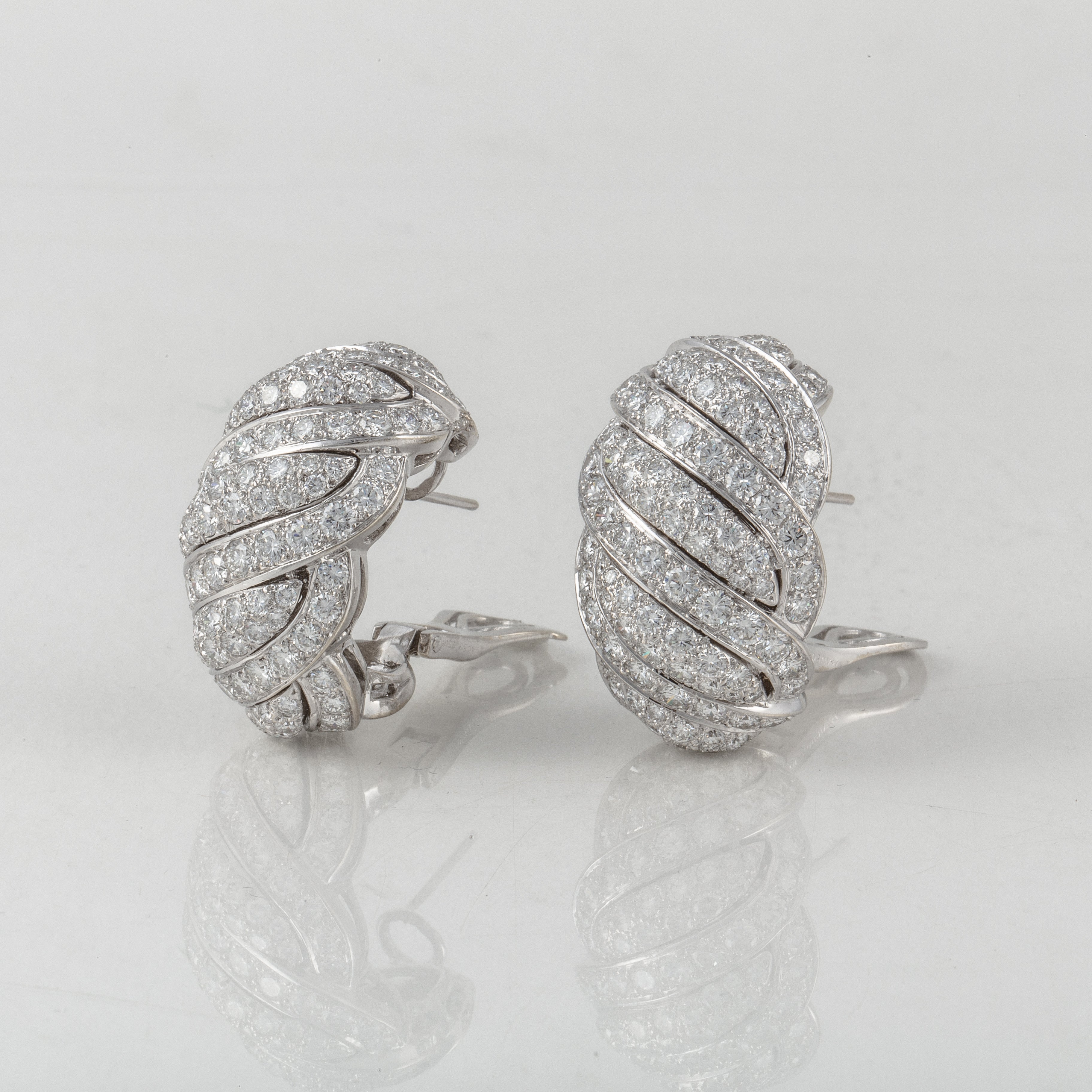 A pair of vintage Mauboussin pave diamond clip earrings, set in 18K white gold. Circa 1990s.