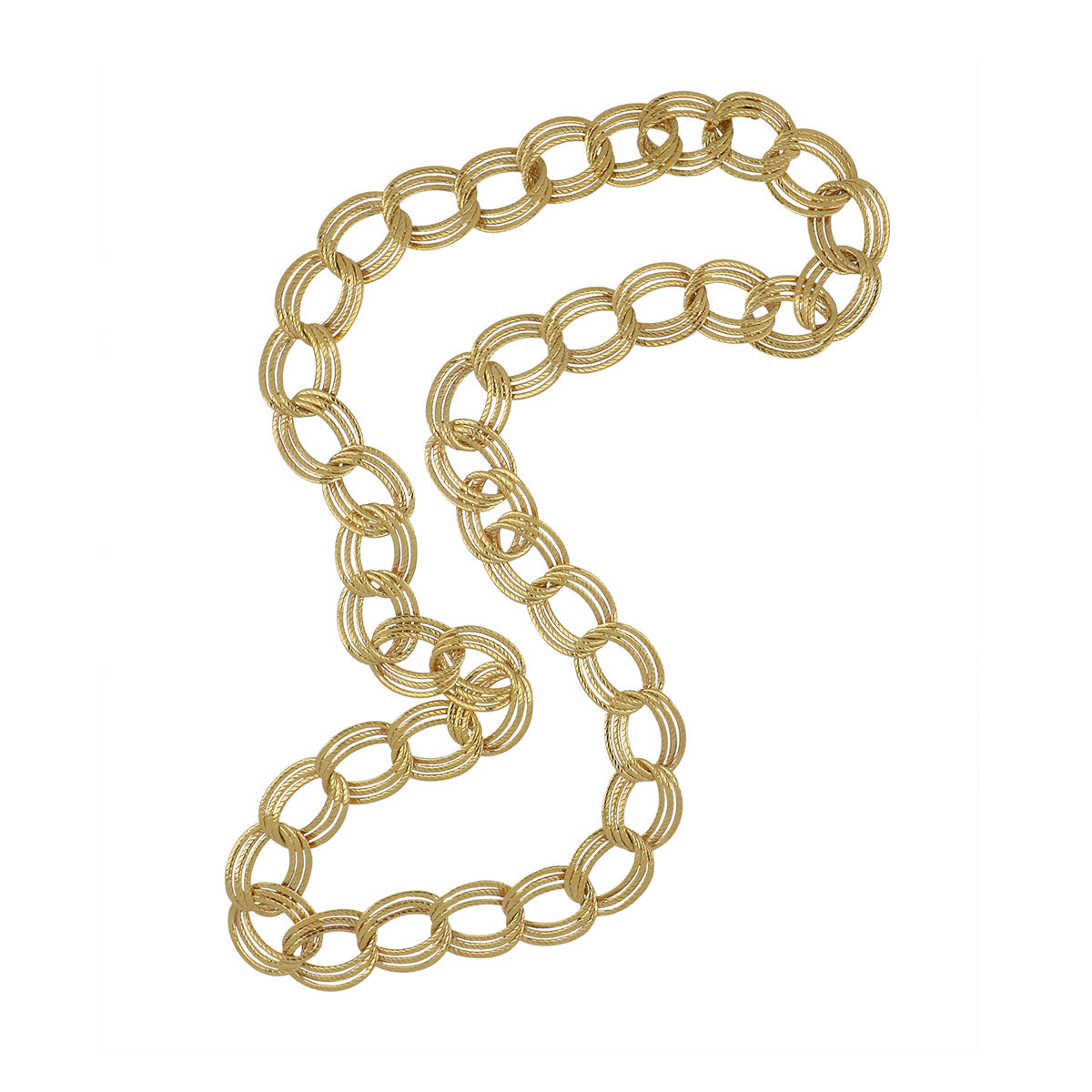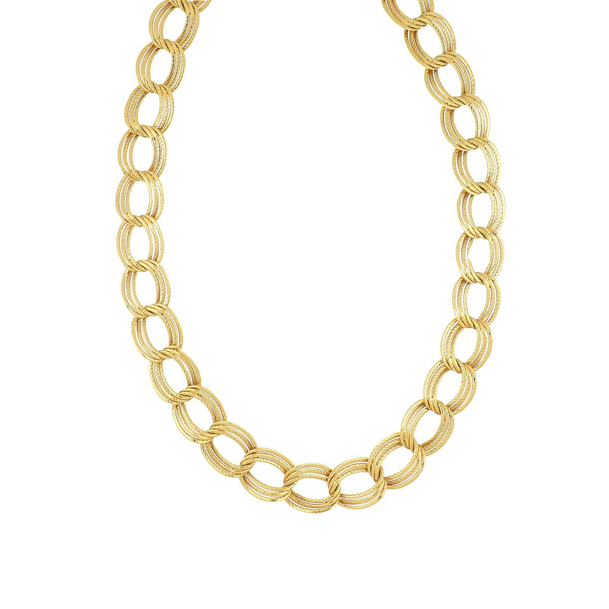 A vintage Van Cleef & Arpels textured triple-curb link necklace in 18K yellow gold. Circa 1970.Vintage & Estate CollectionLength: 33.00 inchesWidth: 22mm