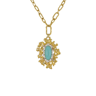 Estate Jacquie Aiche 14K Gold Turquoise Horn Pendant Necklace with Diamonds
