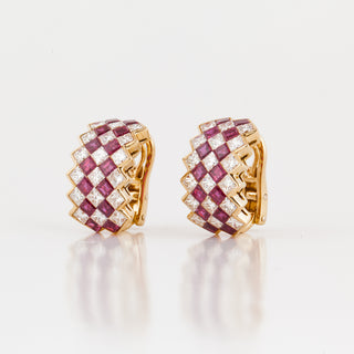 Vintage 1990s Oscar Heyman 18K Invisible-Set Ruby Clip Earrings with Diamonds