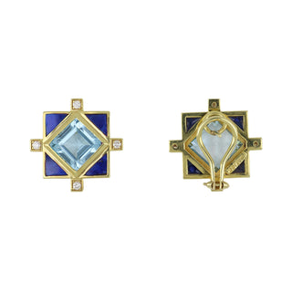 Seaman Schepps 18K White Gold Aqua, Moonstone, Prehnite & Sapphire Cluster Earrings