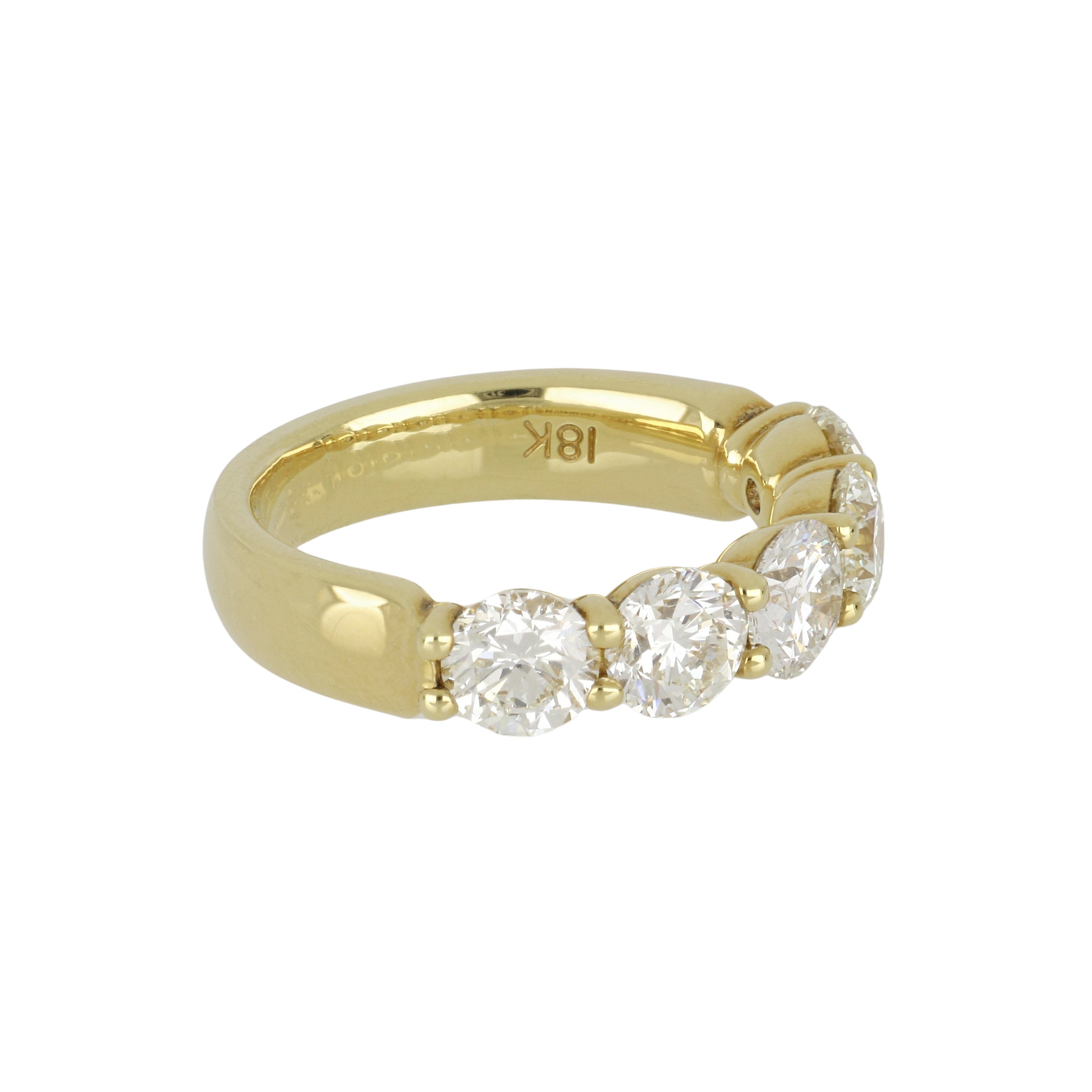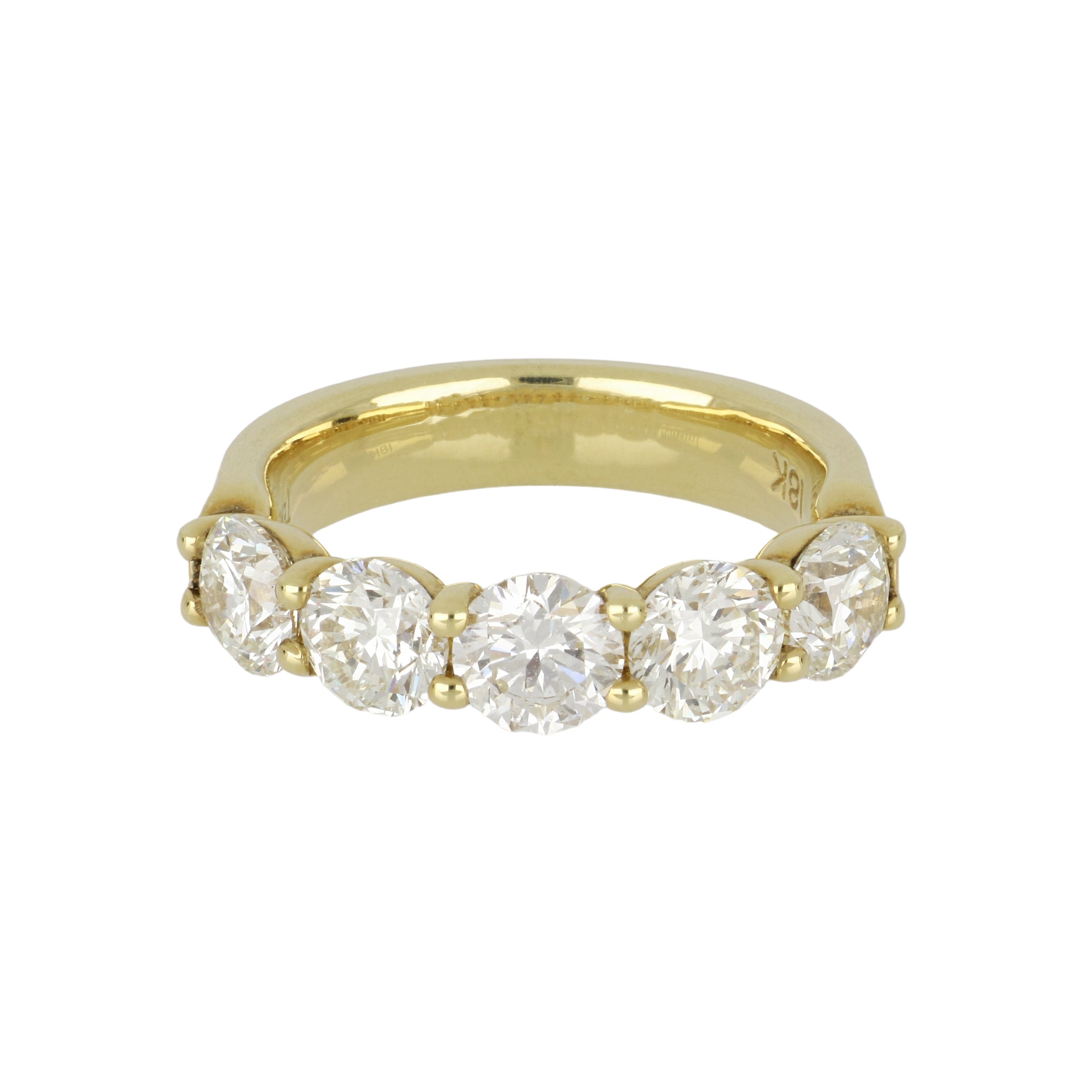 A classic five stone round diamond "buttercup" band in 18 yellow gold.