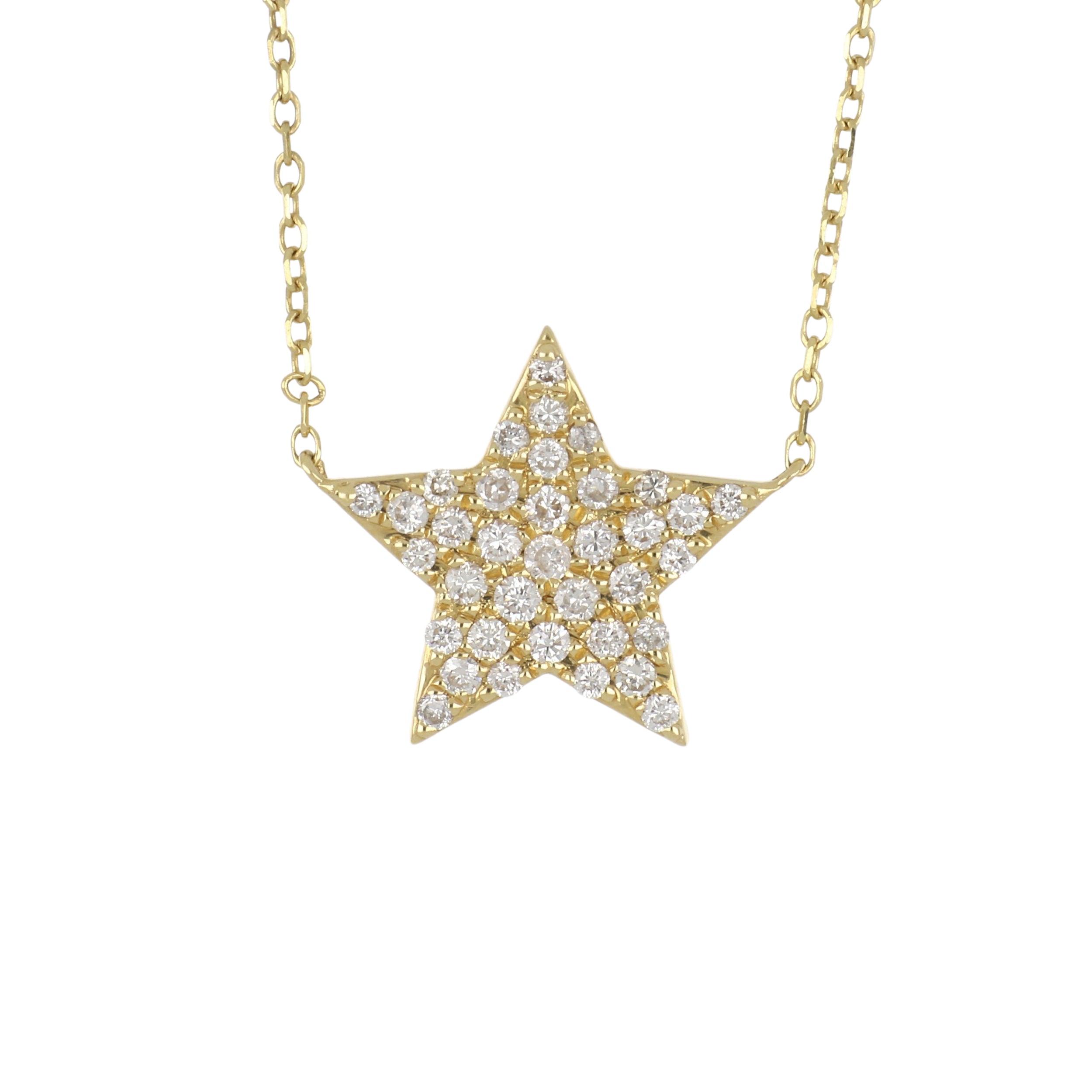 A pendant necklace featuring a fixed pave diamond star on a chain in 18K yellow gold.