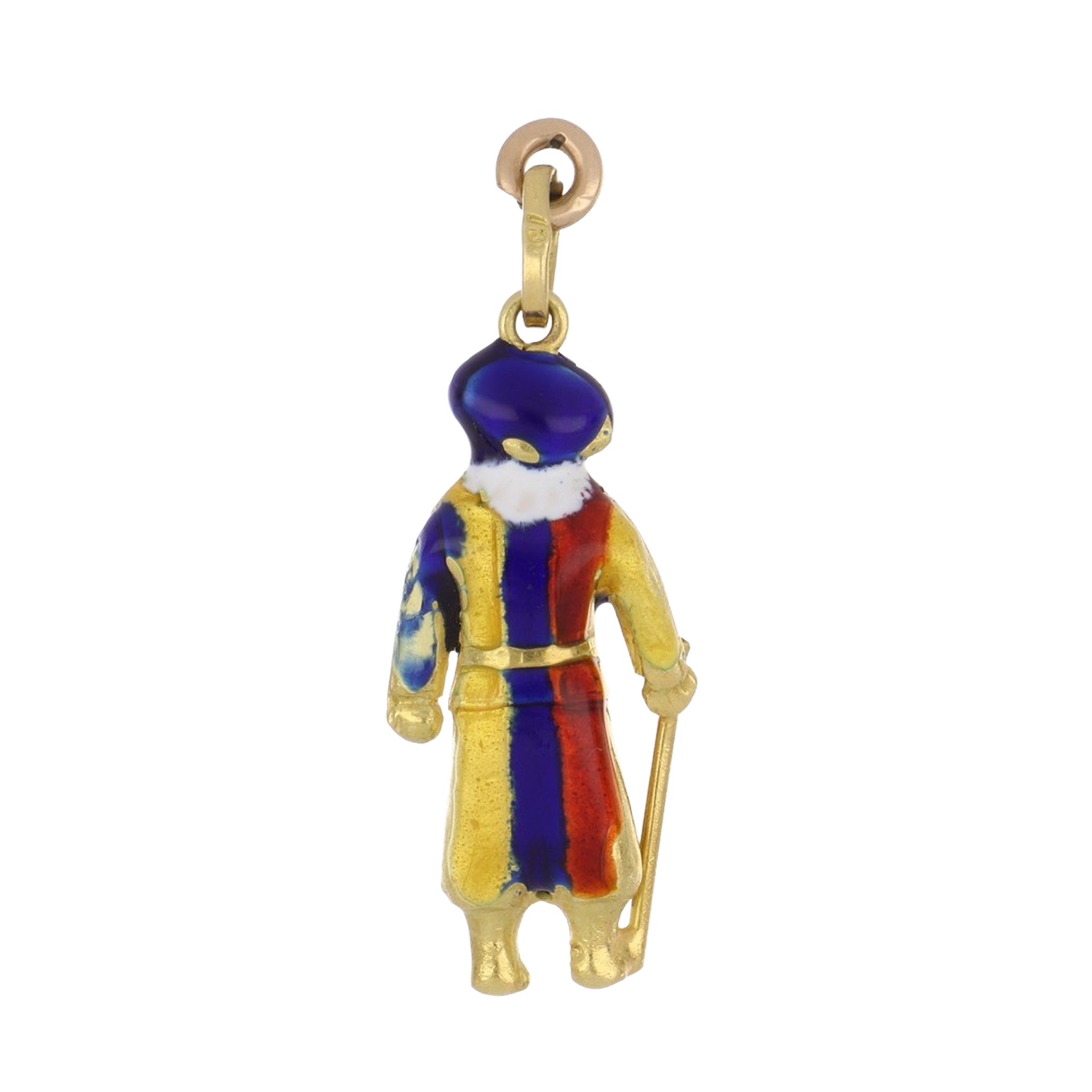 An estate 18K yellow gold Vatican guard charm with white, red, yellow, and blue enamel.